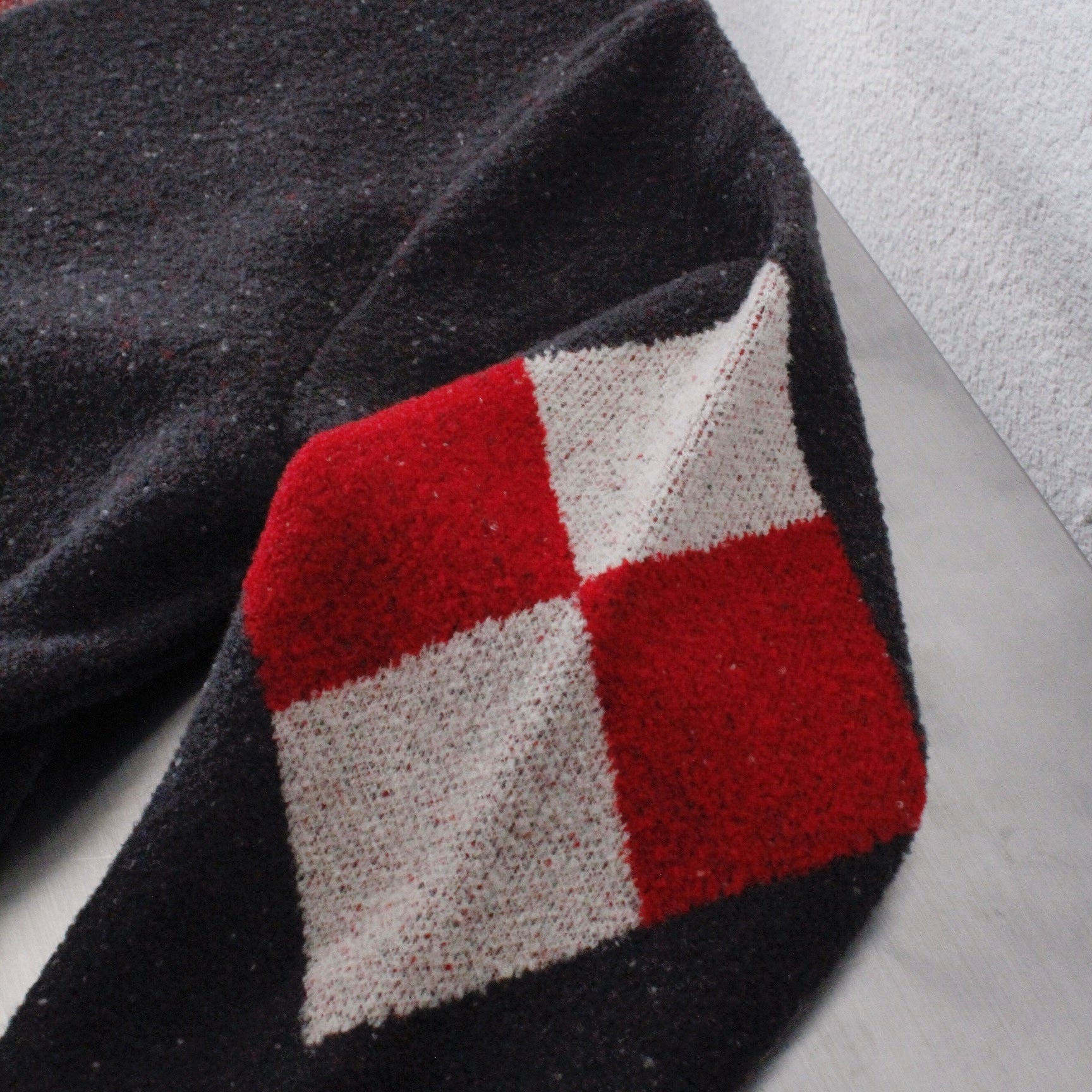 2000年の初めての旅でも訪れたニューメキシコ州。チマヨ織物の独特な雰囲気を再現しつつ、両袖にはあえてアーガイル柄をあしらってみました。