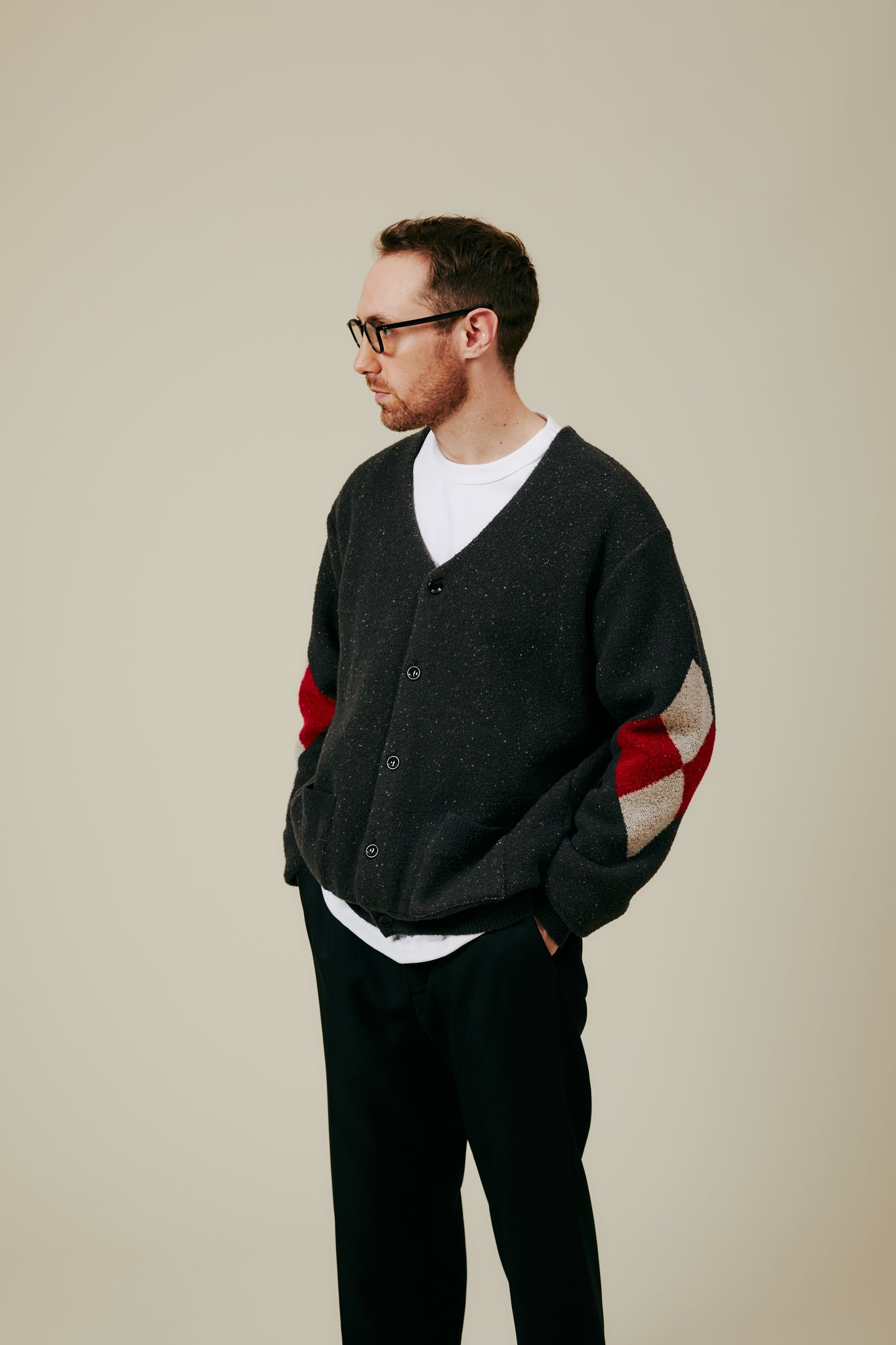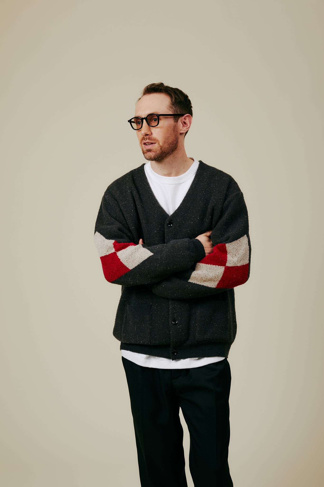 チマヨ ラグから着想を得たダブルジャガードのカーディガン。