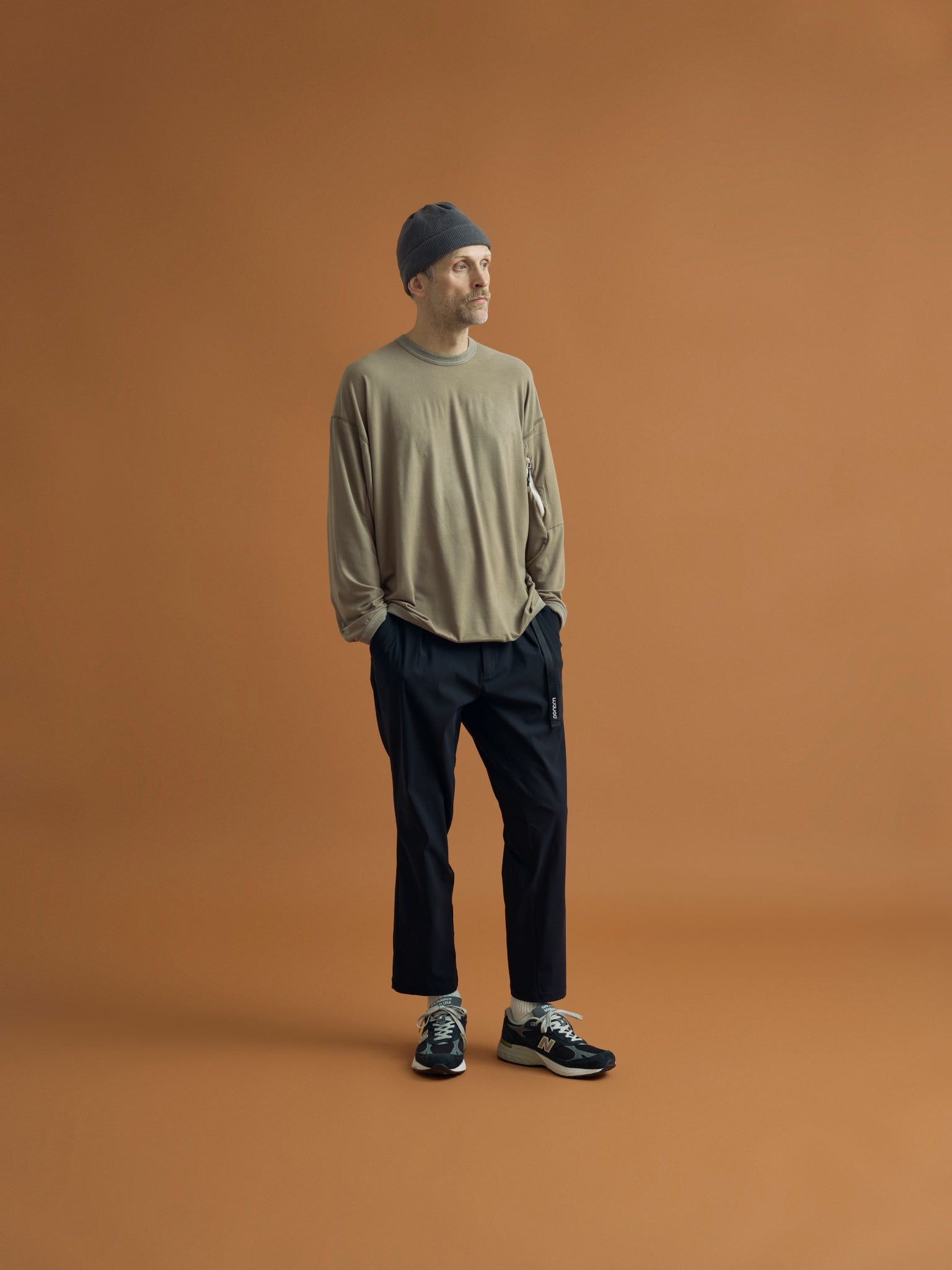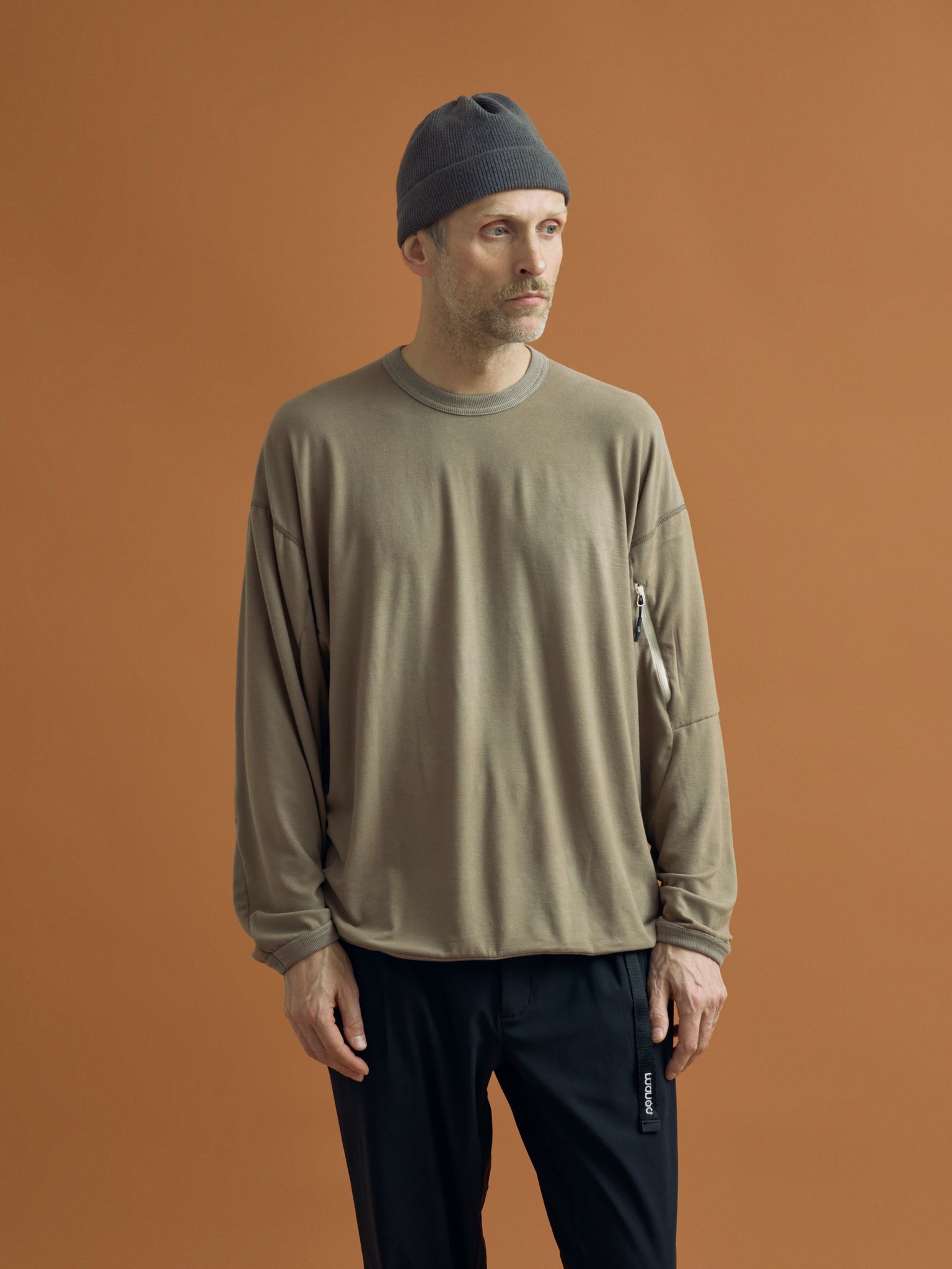 大幅にゆったりとしたシルエットで体の動きに適した切替やカッティングを施し、フラットシーマ仕様の縫製にする事で ストレスを全く感じさせない仕上がり。