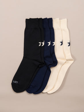 デザイナー自身が生まれ育った環境や影響をうけたものをデザインに落とし込み、またスタイリングの中で靴下が脇役ではなく主役になれるようなソックスを目指しています。 上質なクオリティでアメカジやスポーツテイストをベースにしたPOPなデザインは足元にアクセントを与えてくれます。サイドやバックからチラリとデザインが映える1足が評判です