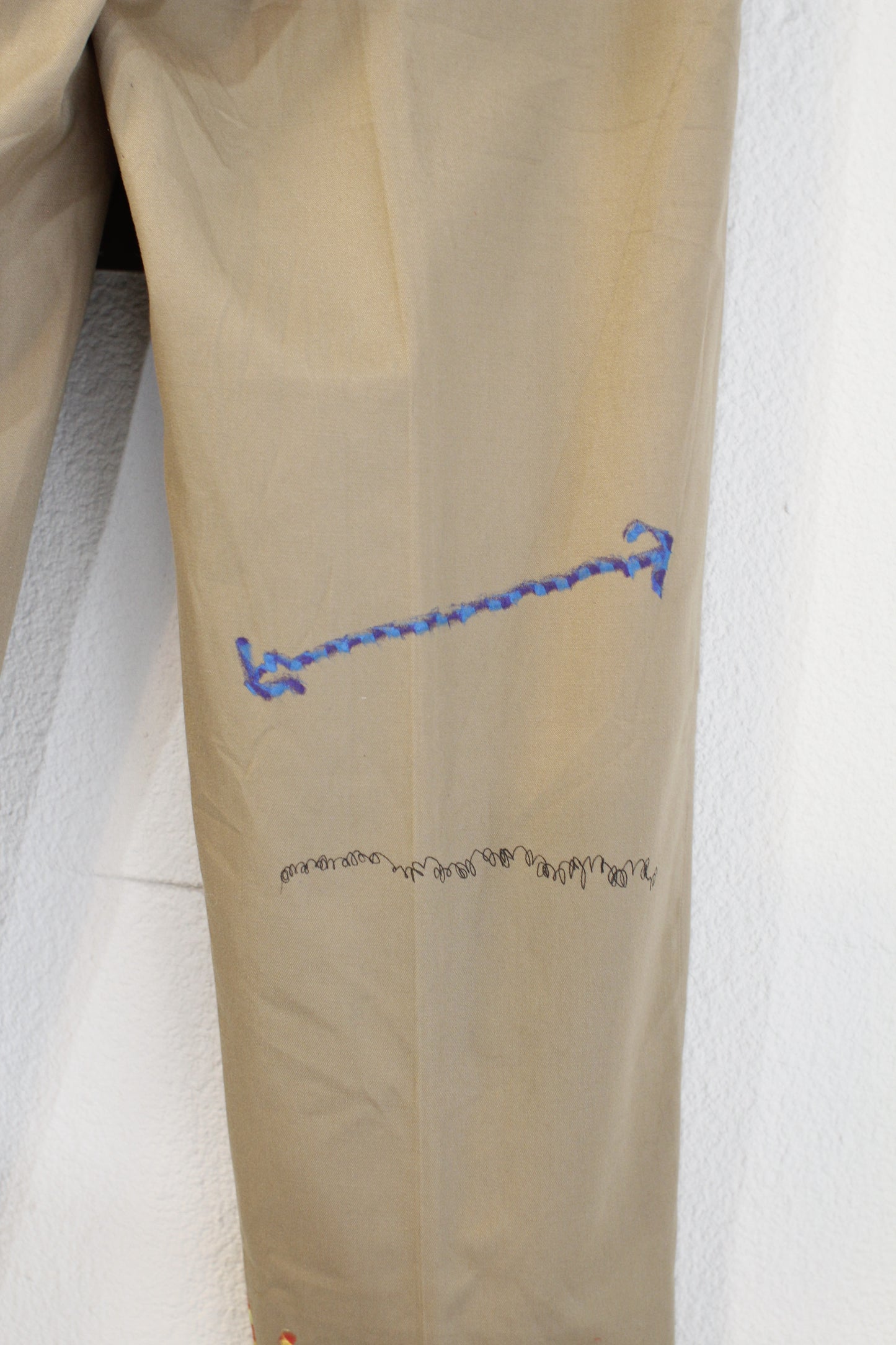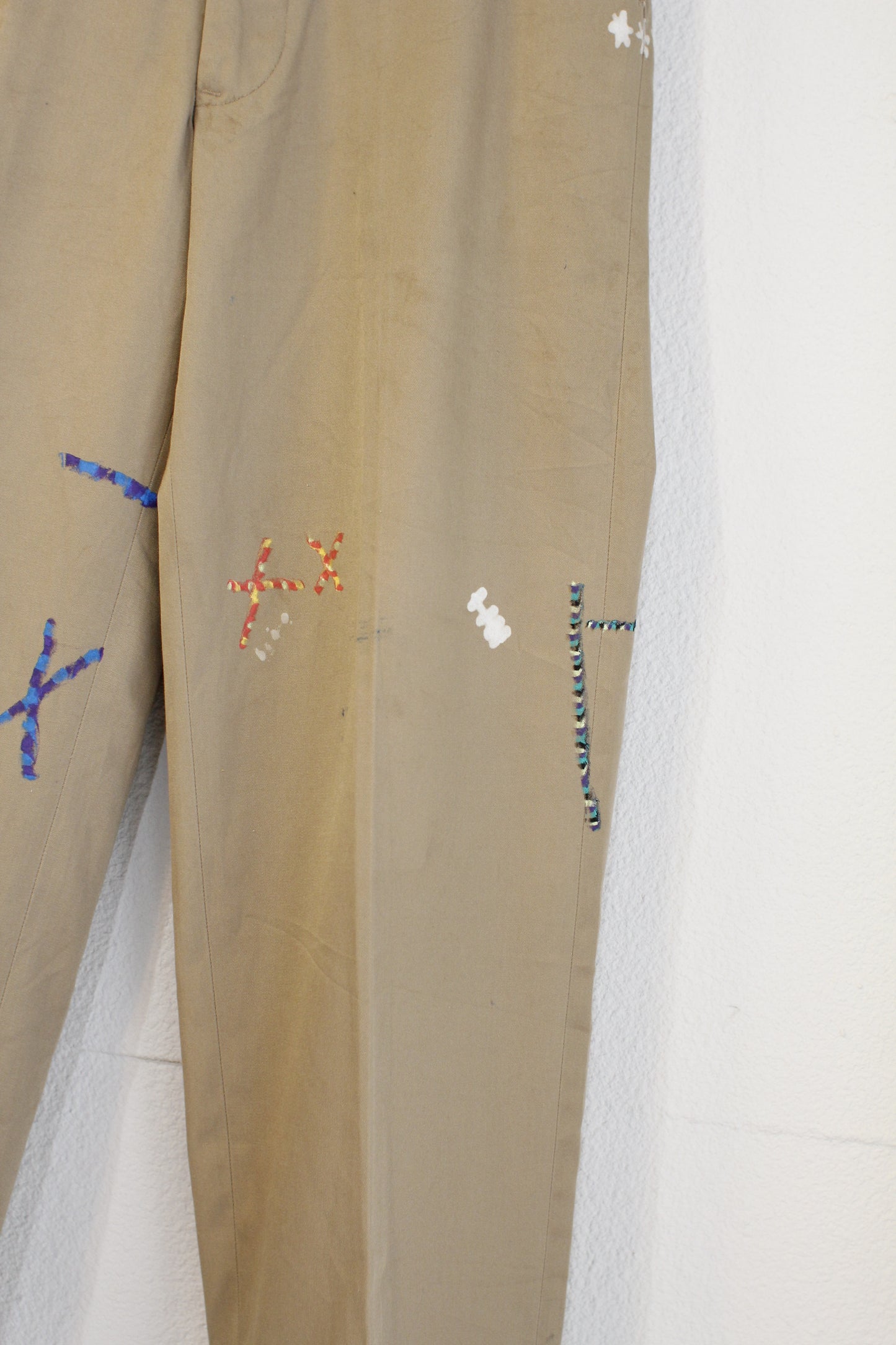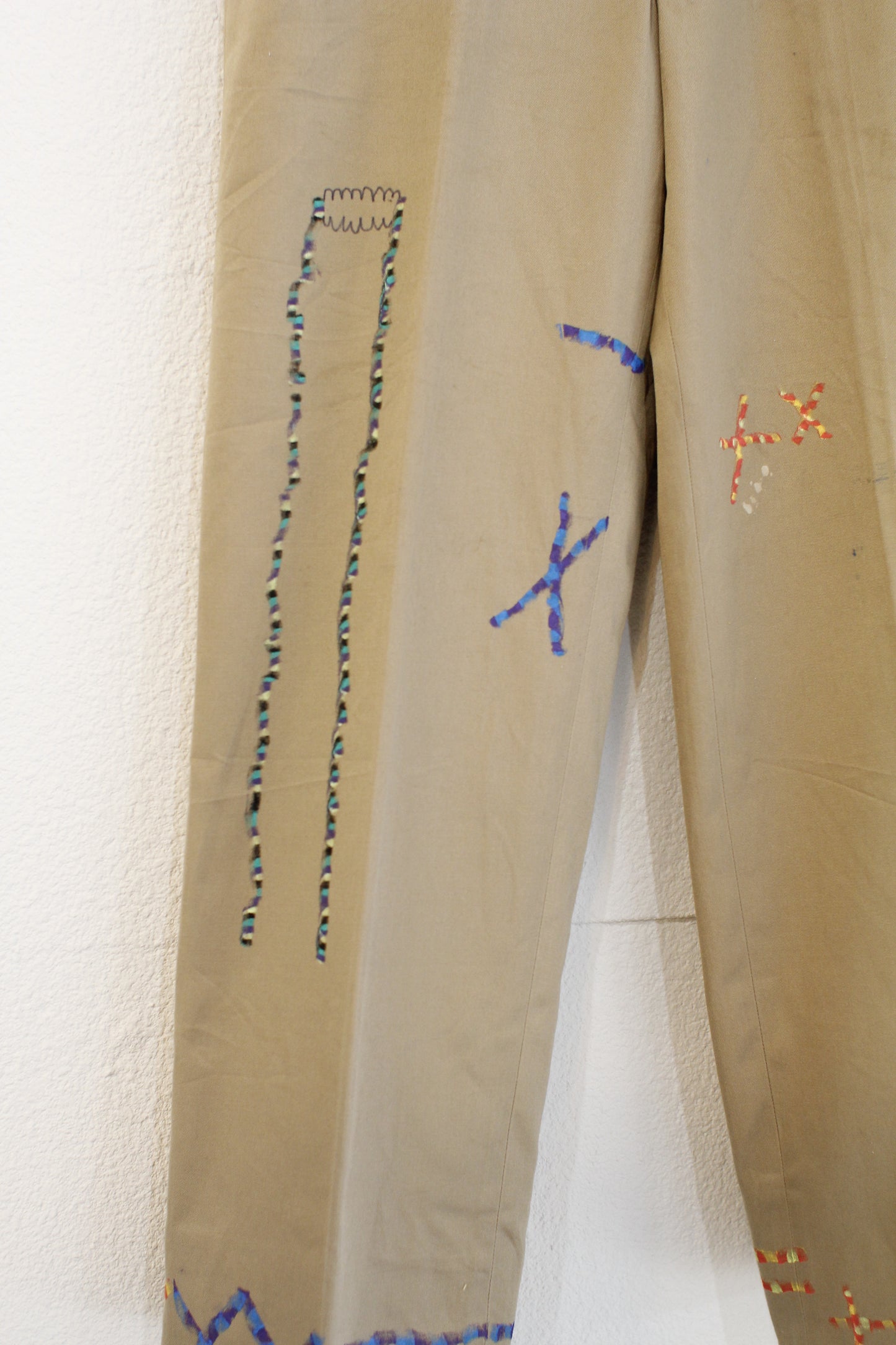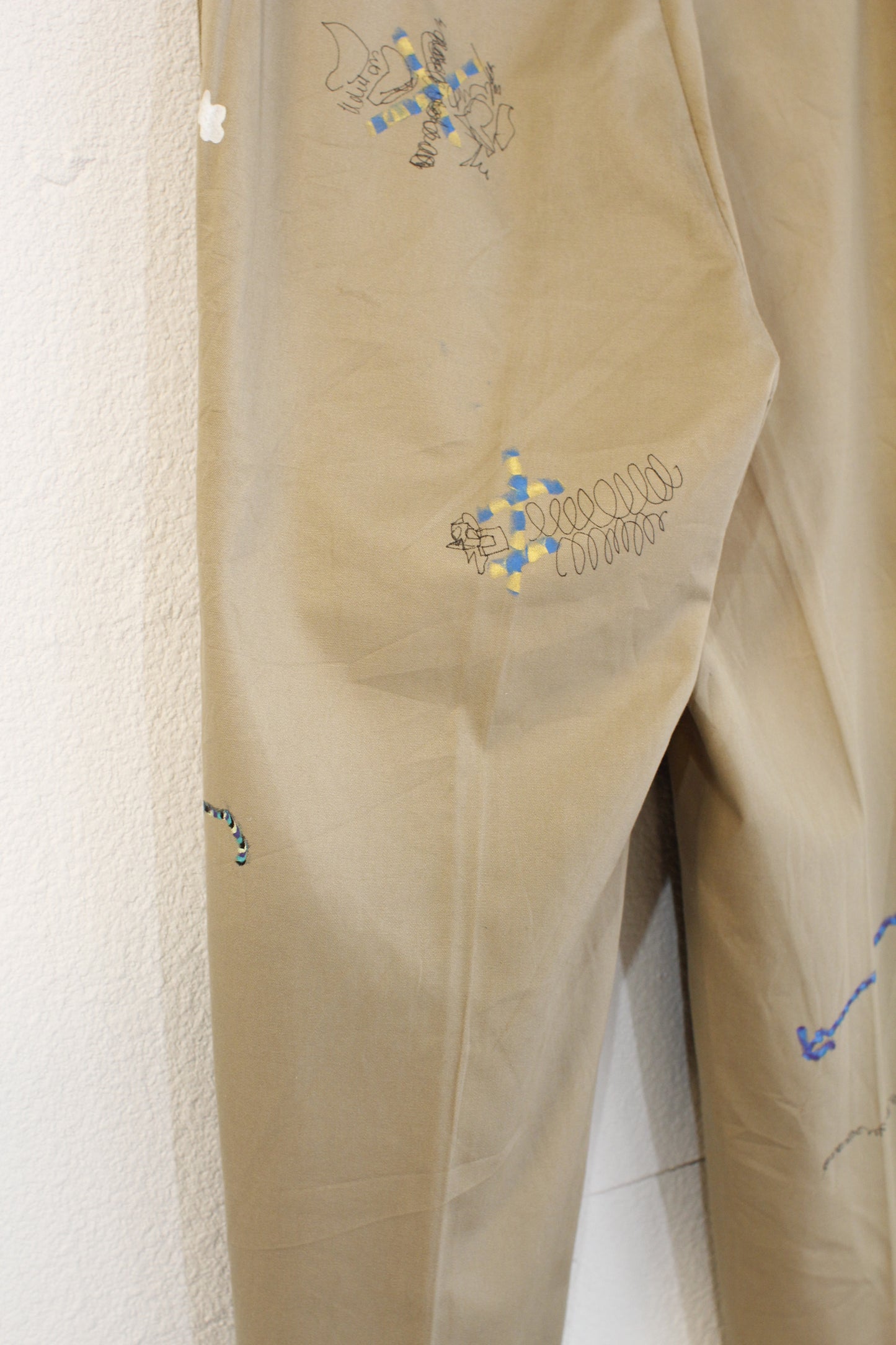 こちらは古着のチノパンツの上に赤木楠平さんの手で新たなデザインを落とし込んだ "ARTed" となっております。