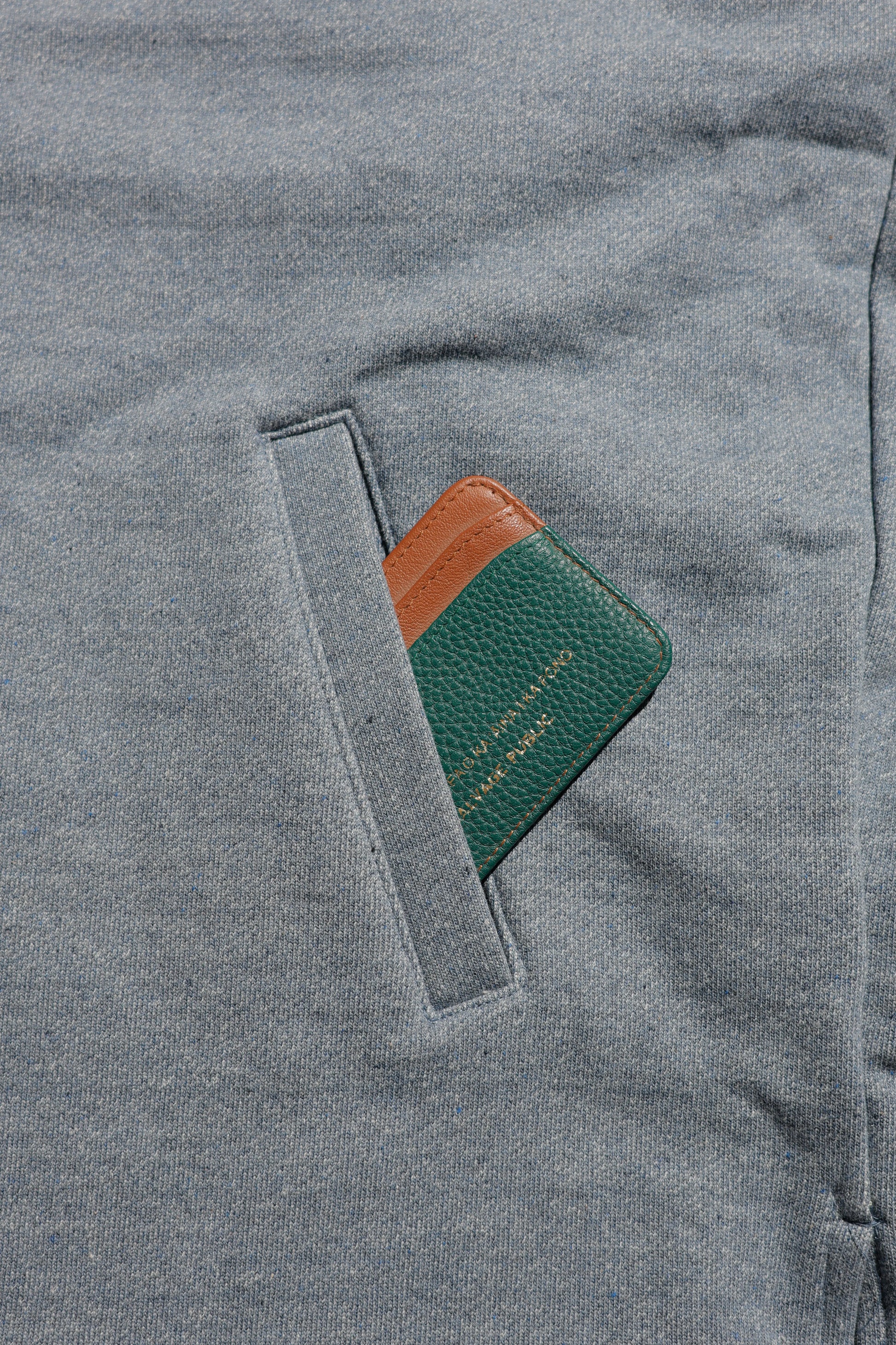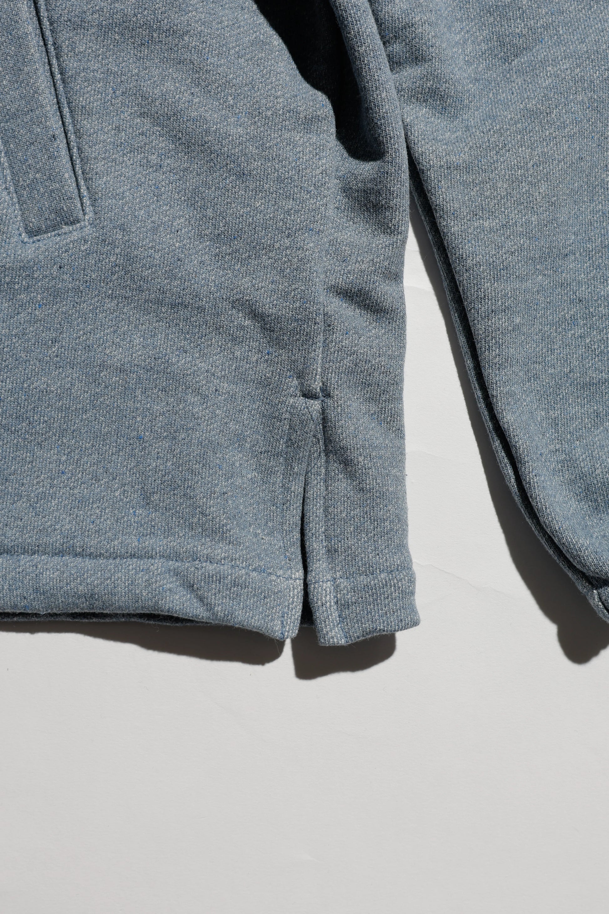 回収されたデニムとリサイクルコットンを反毛し、さらに50%のオーガニックヴァージンコットンをブレンドして紡績。デニム由来ならではの深みのある杢調カラーが印象的で、サステナブルでありながら上品な佇まいに仕上がっています。