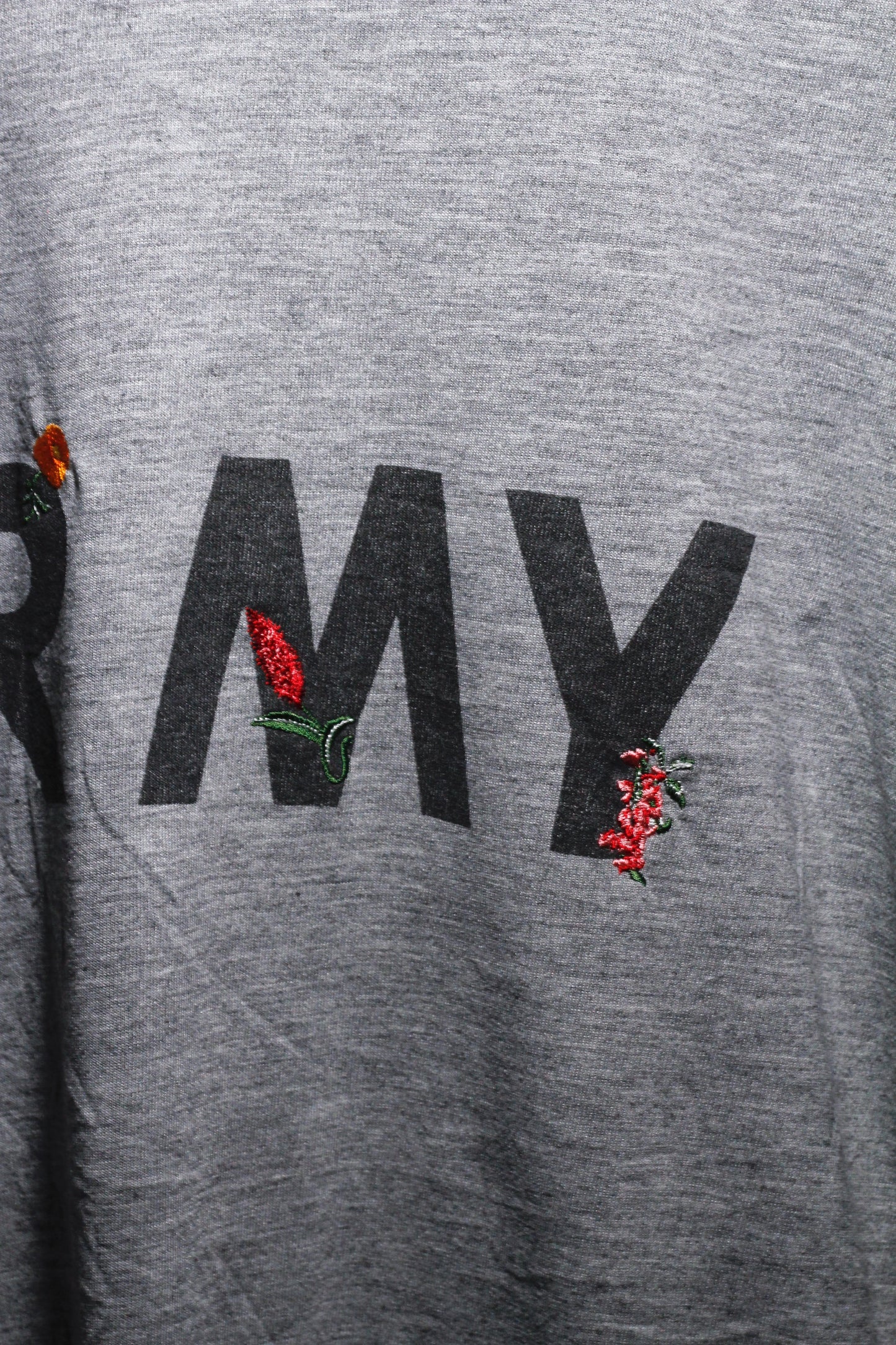 米陸軍がトレーニングする際に実際に着用していたミリタリーTeeシャツで霜降りグレーの程よい厚みが人気のTeeシャツをリメイクしています。