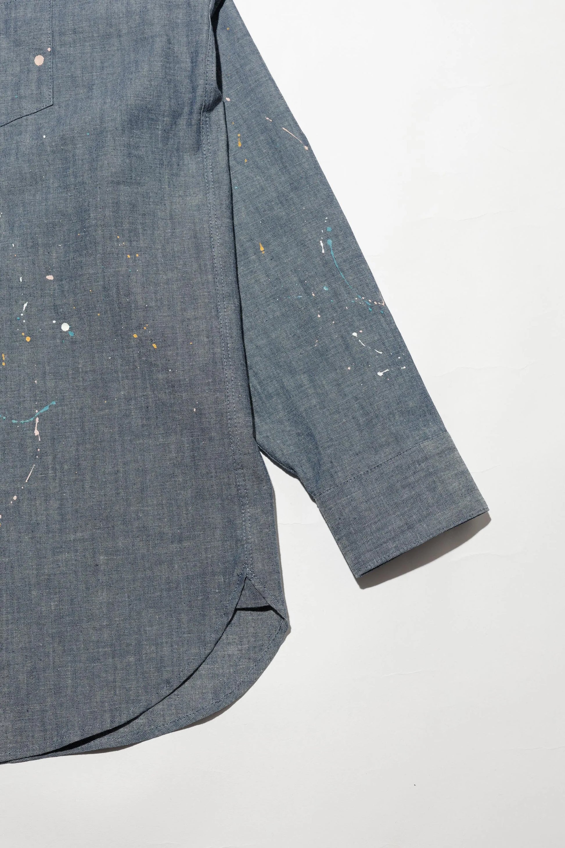 オーセンティックな雰囲気の漂う4.5ozシャンブレーは米・ストアブランドが当時展開していたシャンブレー規格を再現して備後地区で織り上げたインディゴのシャンブレー生地です。少しムラが強めの糸を使用することでアタリ感や経年変化をより楽しんでいただけるような表情に仕上げている。
