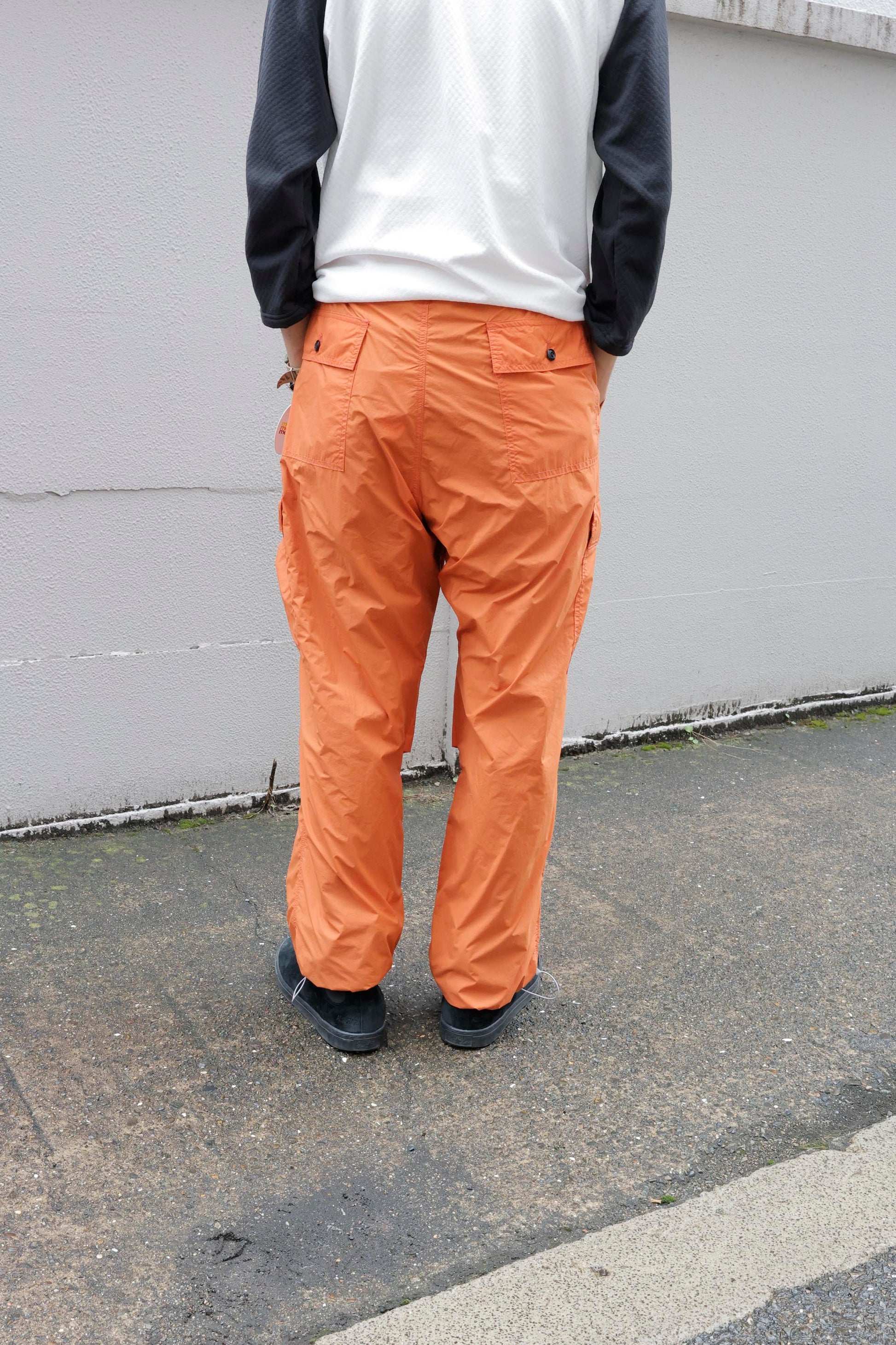 膝に入れたタックはパラシュートパンツのディティールを取り入れ膝の曲げ伸ばしが容易にしている。