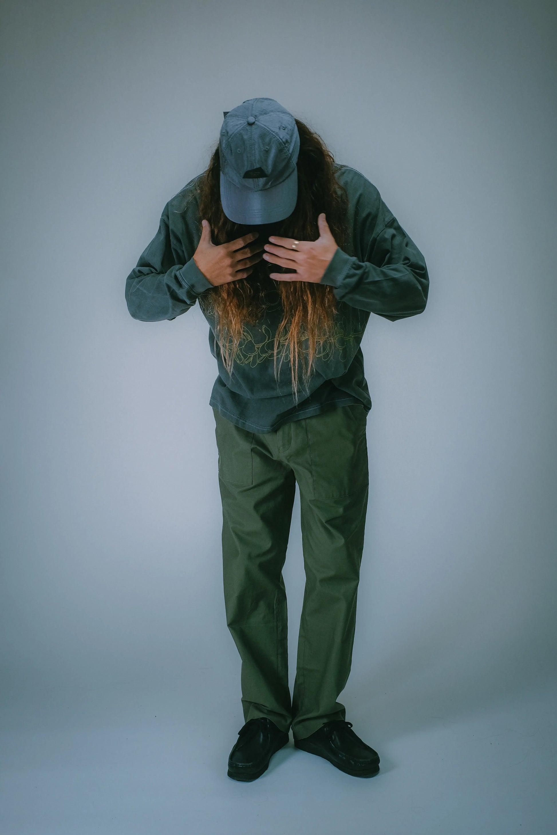 プリントにはシルクスクリーンを採用し、版を重ねることで繊細なグラデーションを表現。インクの重なりによって生まれる濃淡や揺らぎが、フラットになりがちなグラフィックに奥行きを与え、一枚一枚わずかに異なる表情を楽しめる仕上がりになっています。