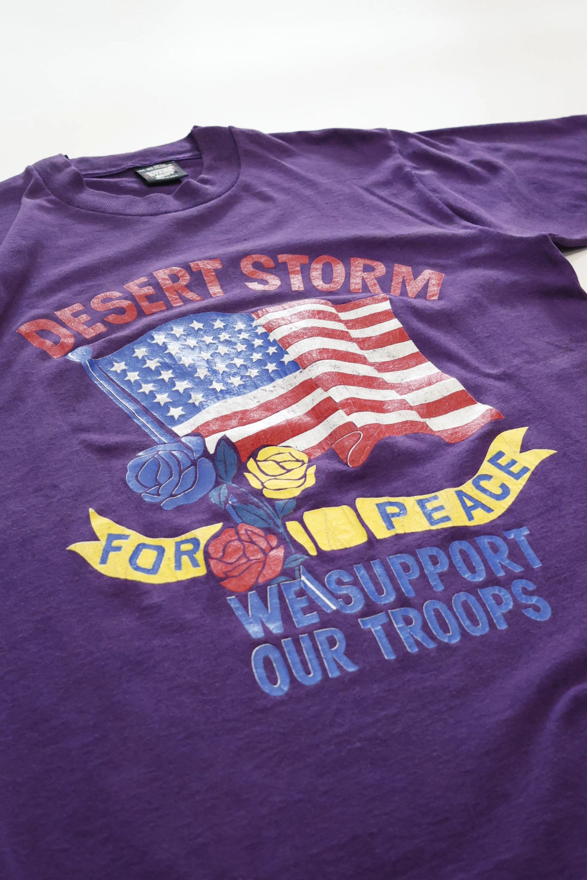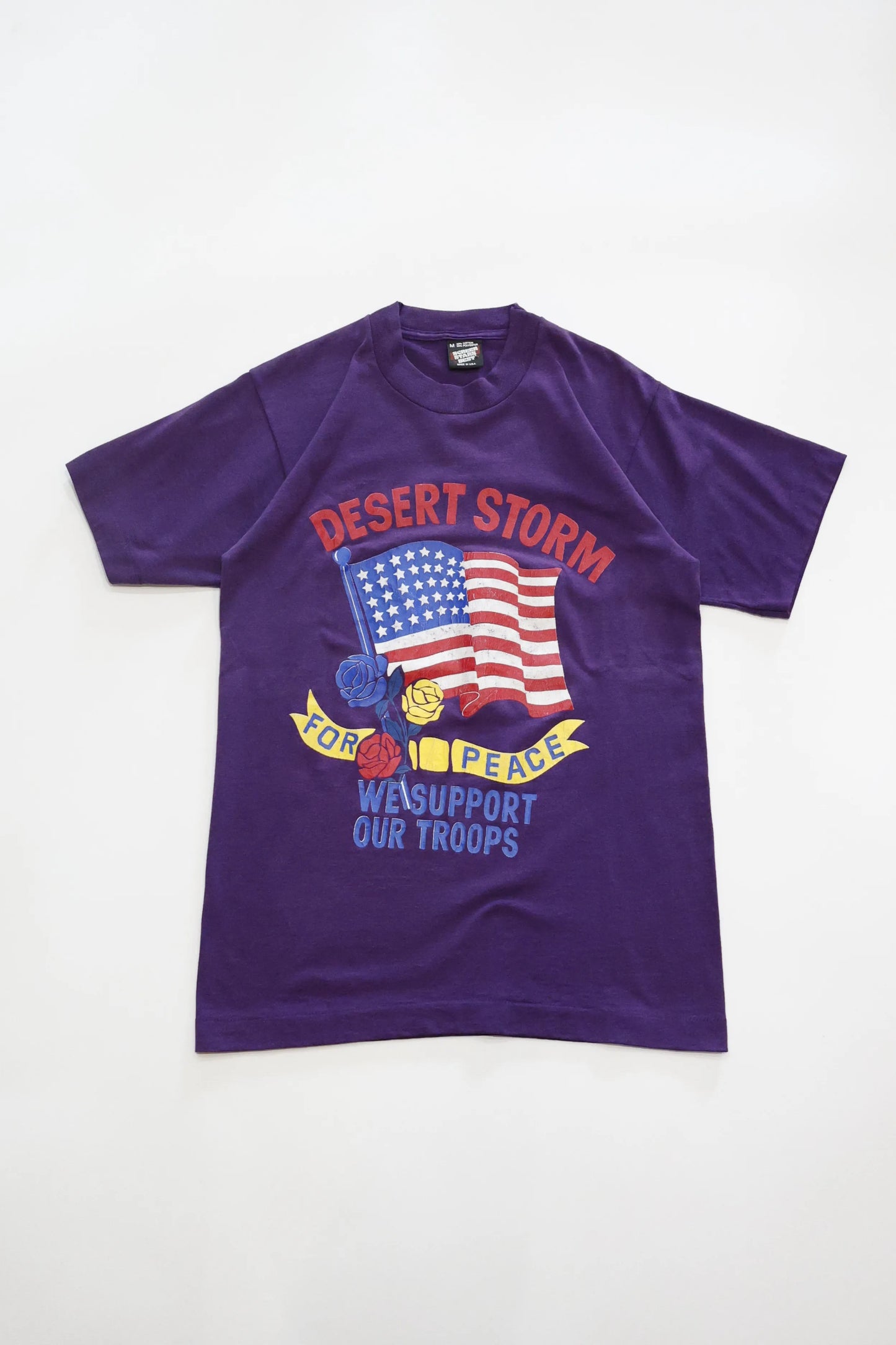 湾岸戦争時にアメリカ国内で多く作られた"Operation Desert Storm(砂漠の嵐作戦)"をテーマにしたプリントTシャツ。