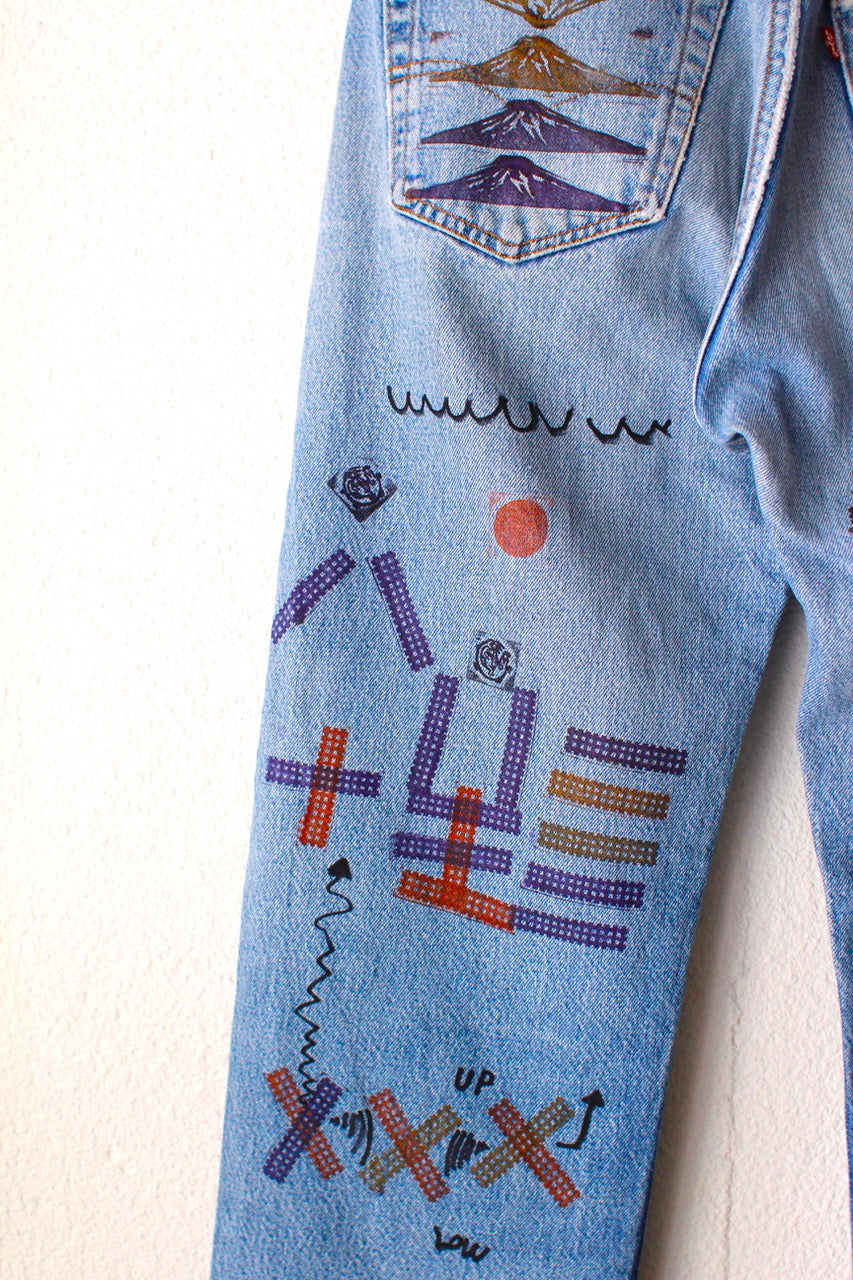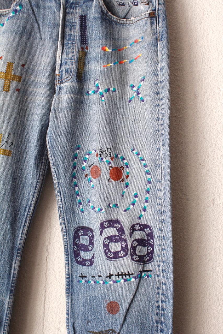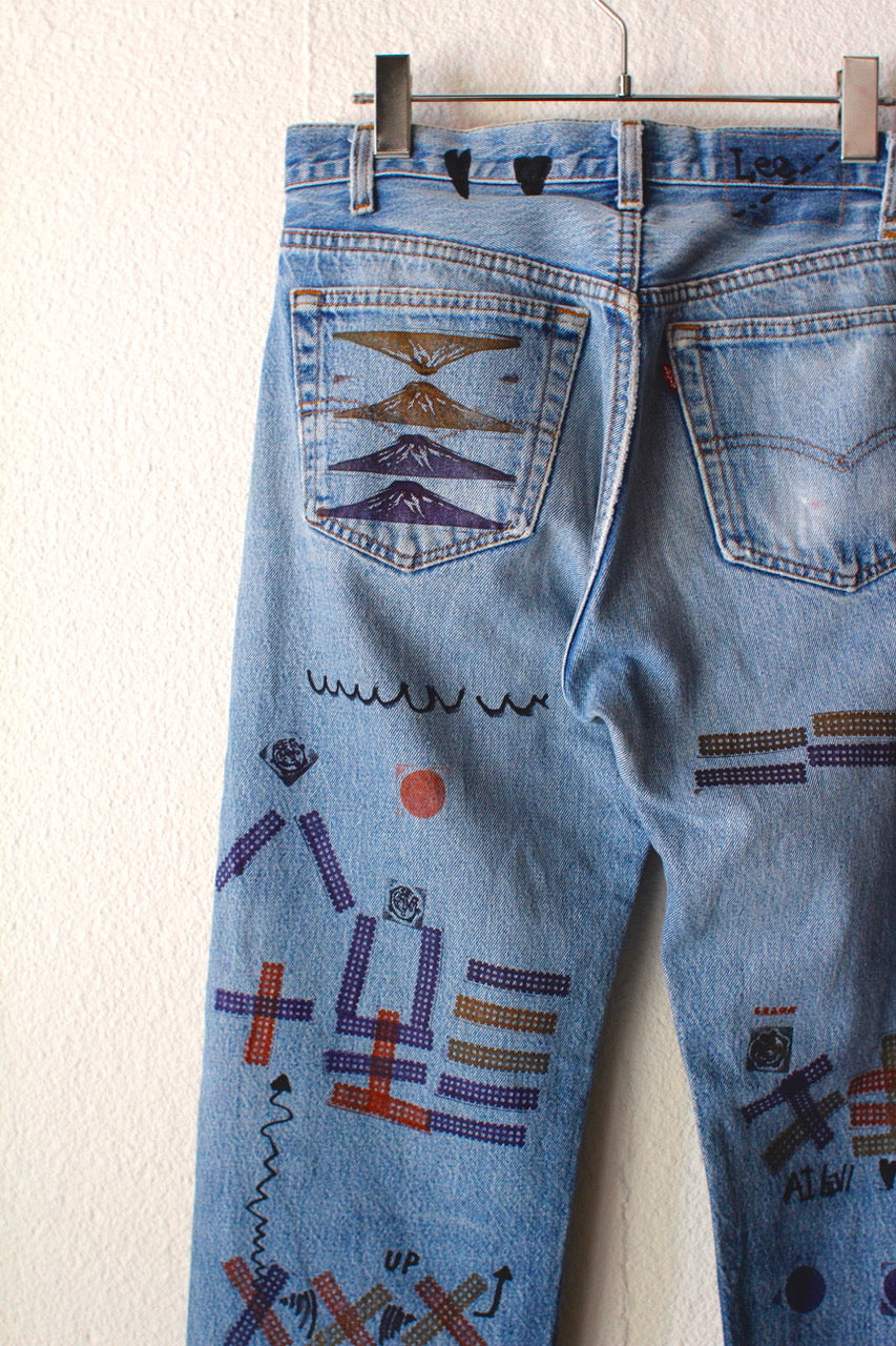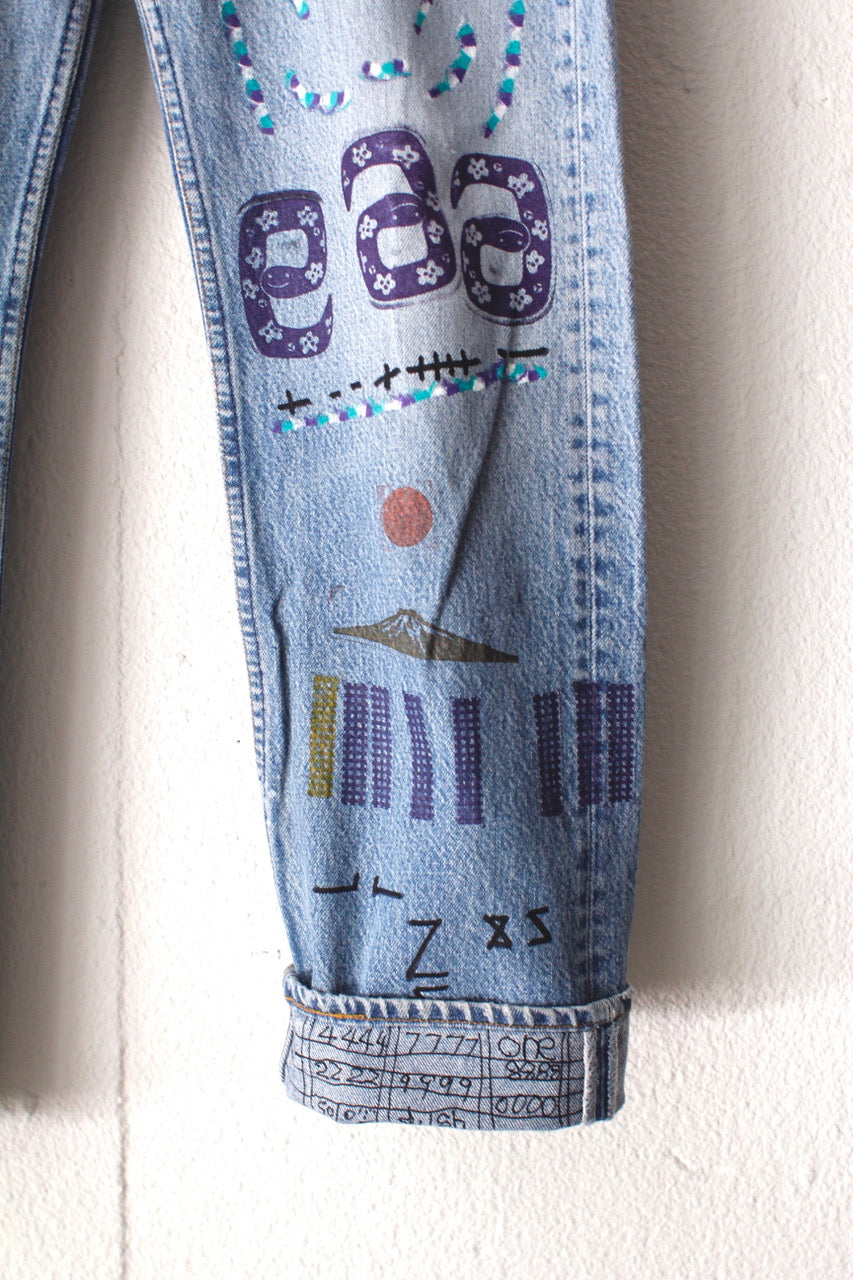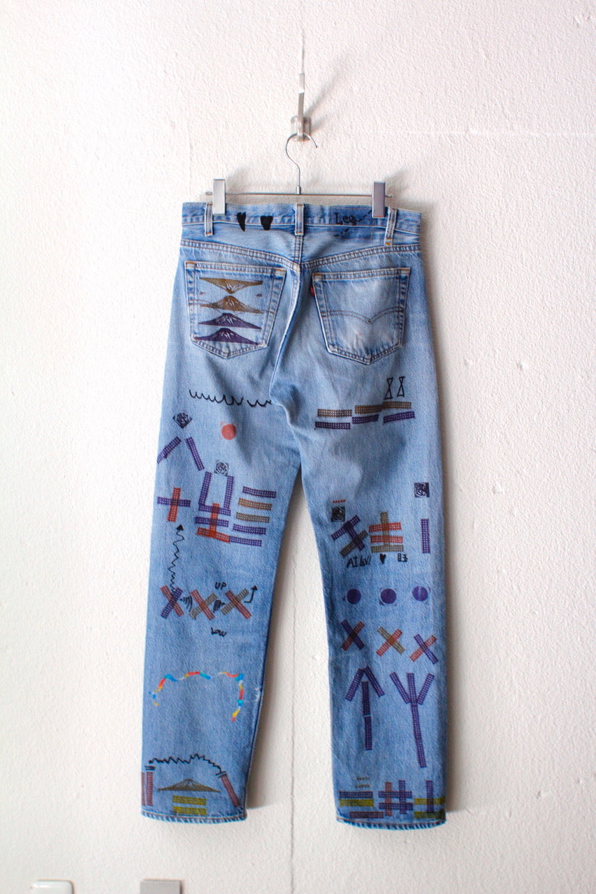 こちらは古着のリーバイスの上に赤木楠平さんの手で新たなデザインを落とし込んだ "ARTed" となっております。