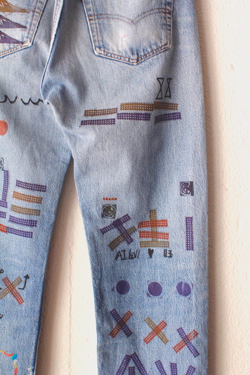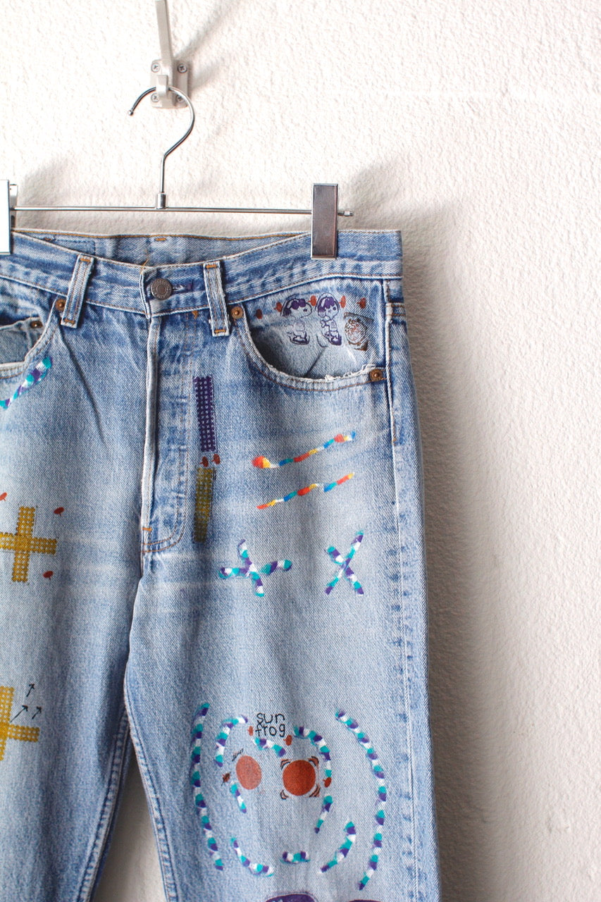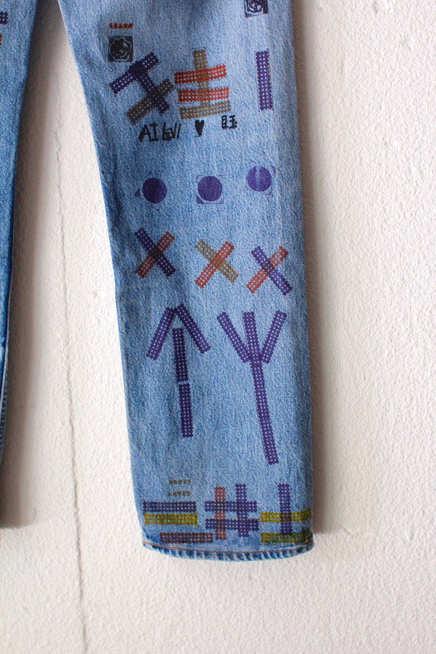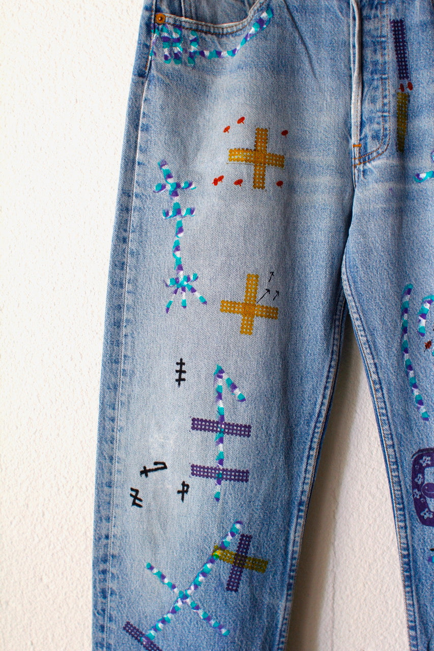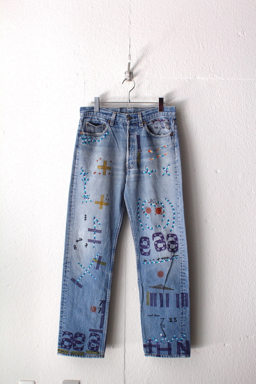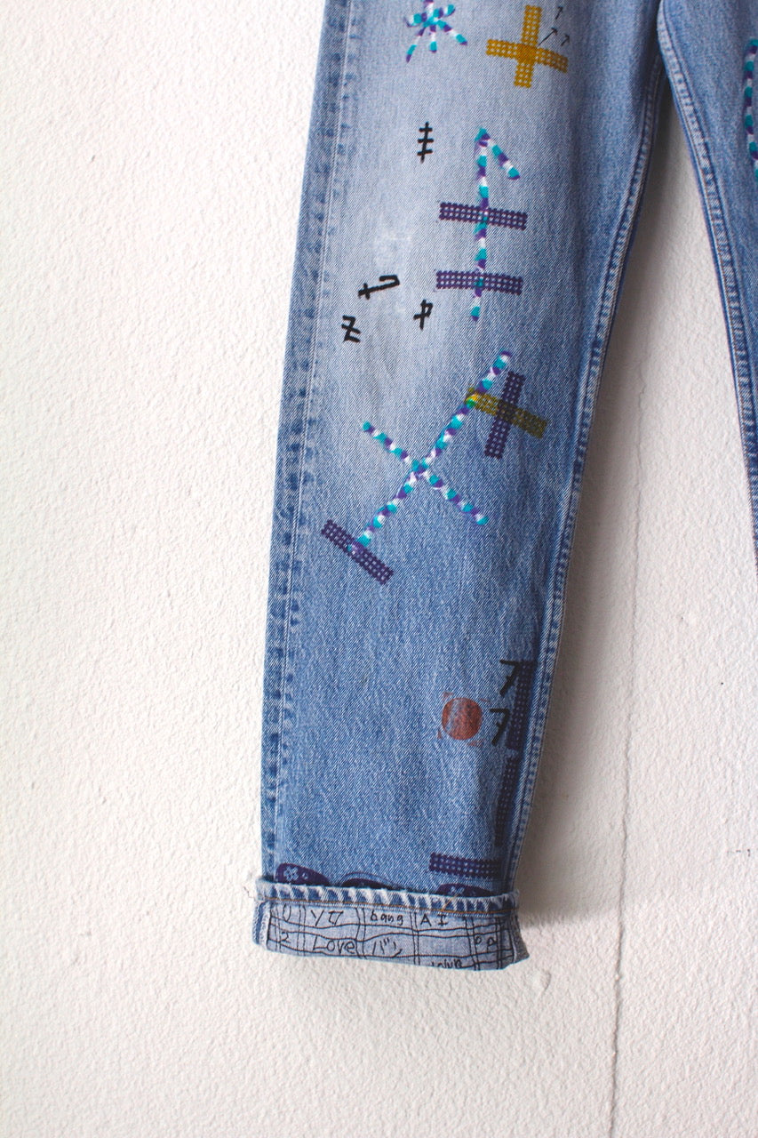 こちらは古着のリーバイスの上に赤木楠平さんの手で新たなデザインを落とし込んだ "ARTed" となっております。
