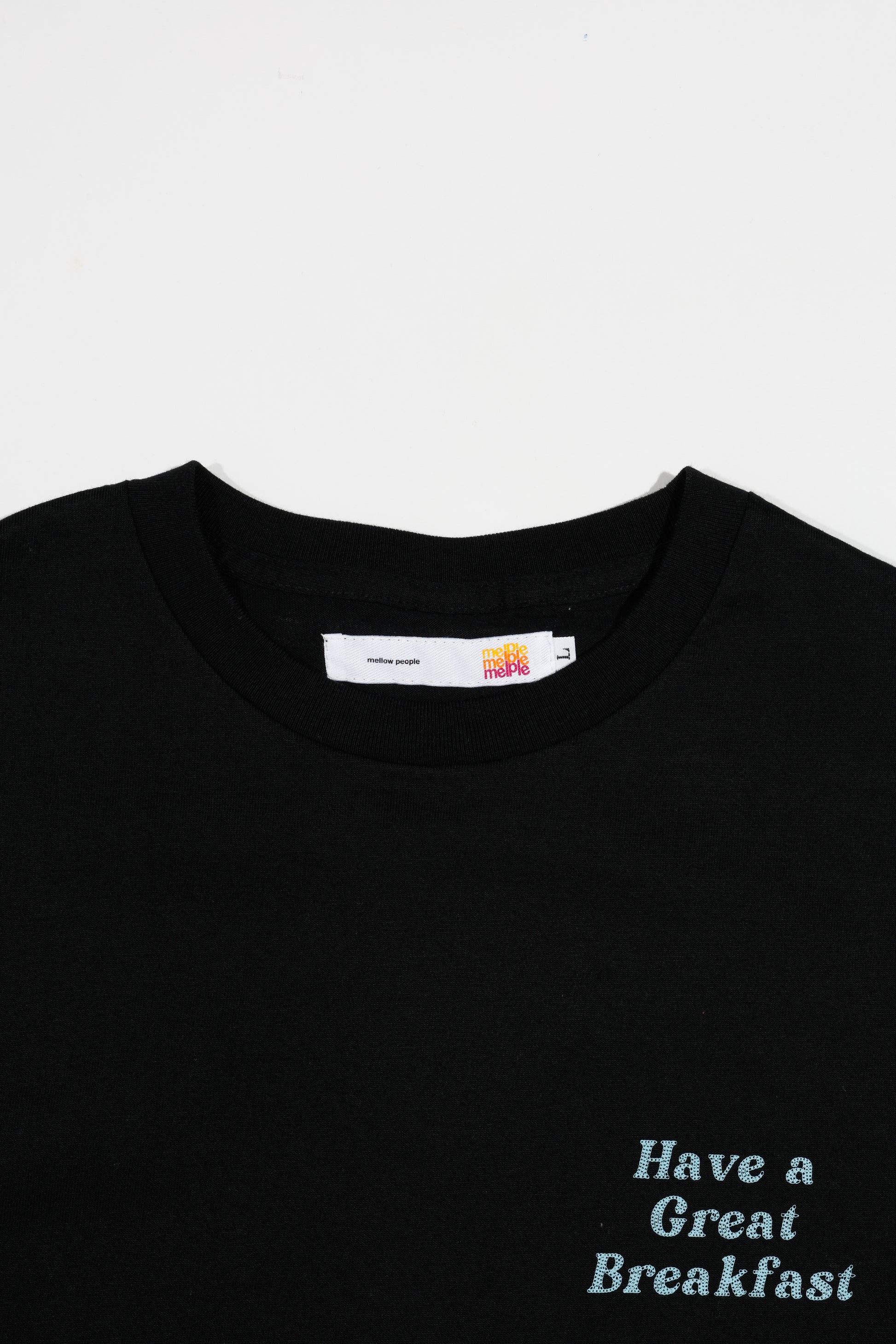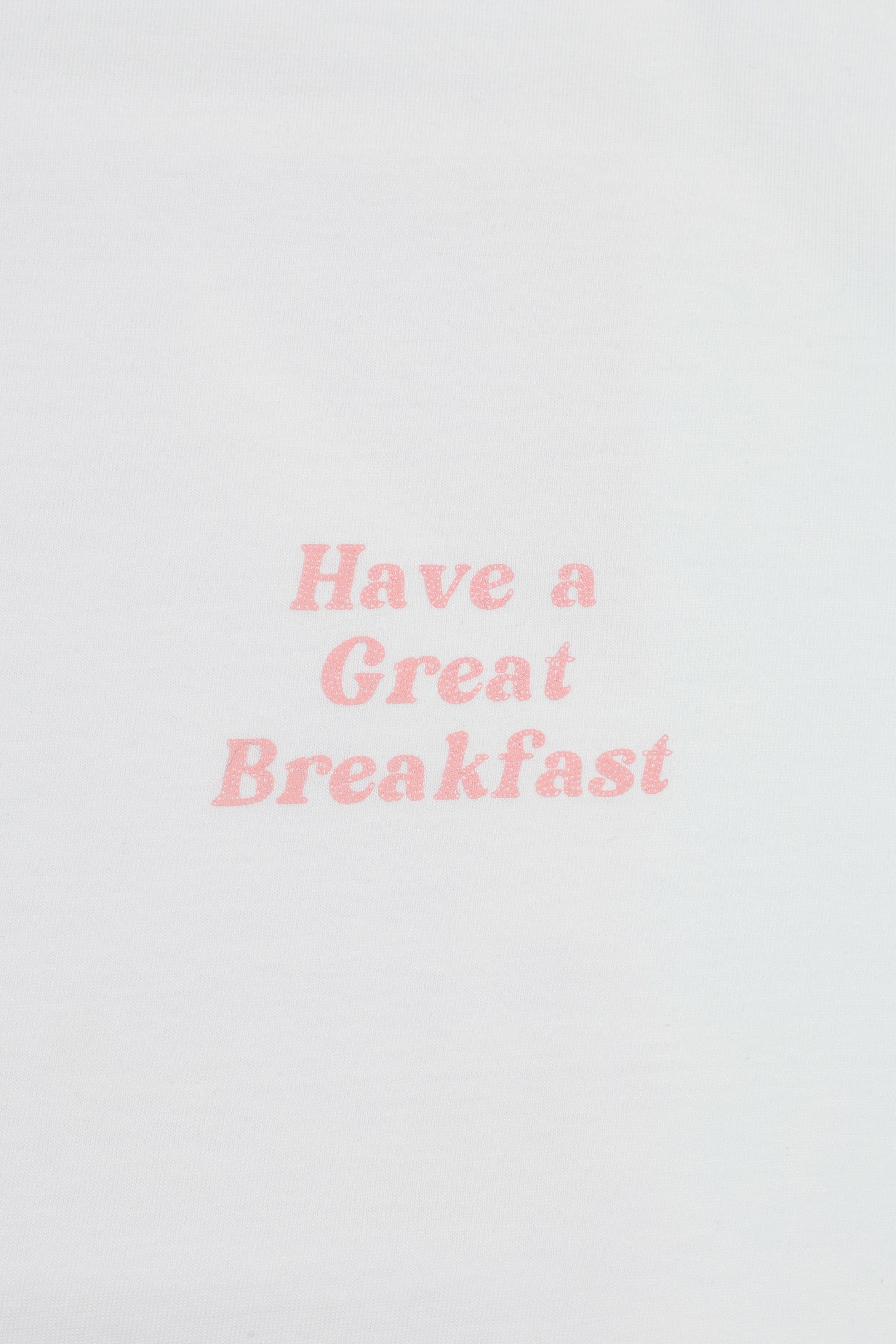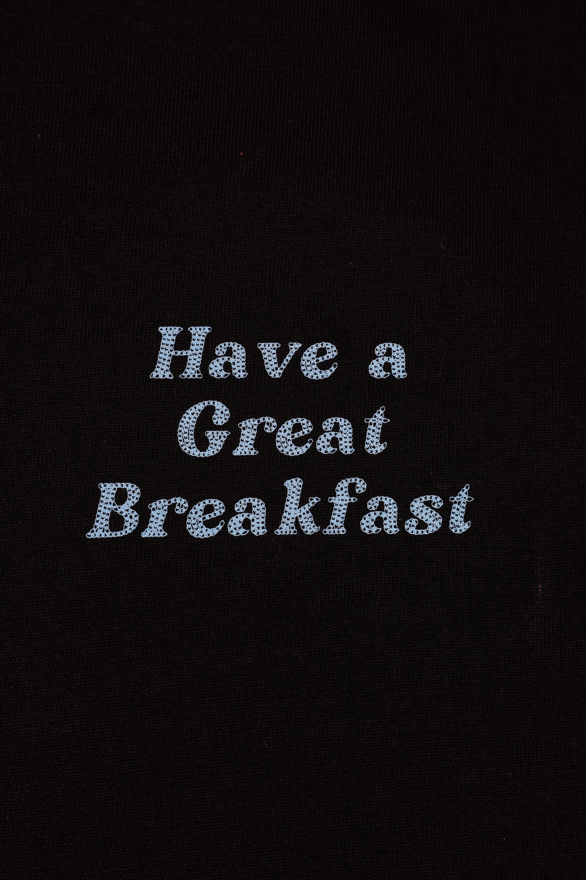 フロントにはHave a Great Breakfastのメッセージがチェーンステッチ風のプリントで入っている。
