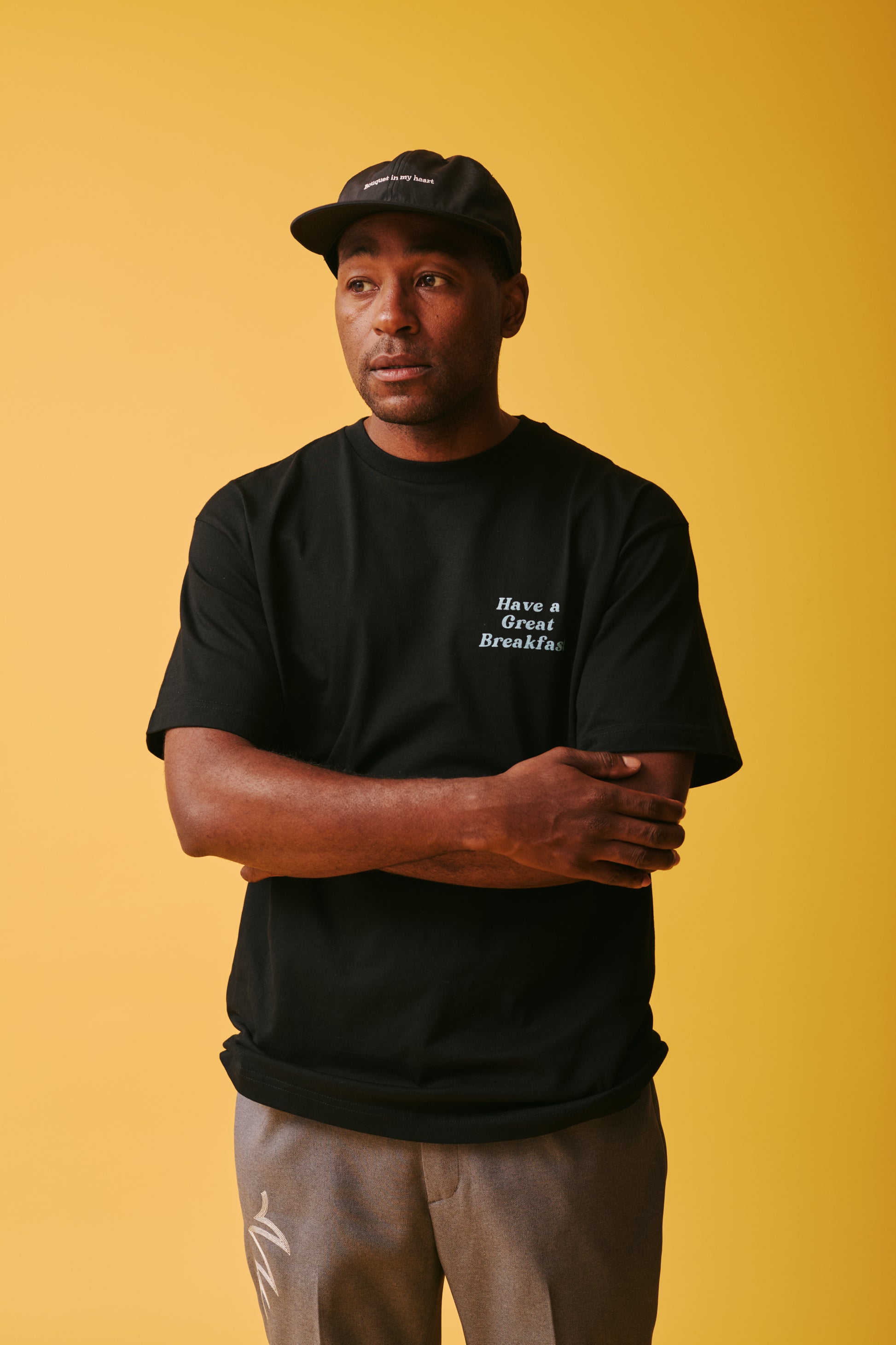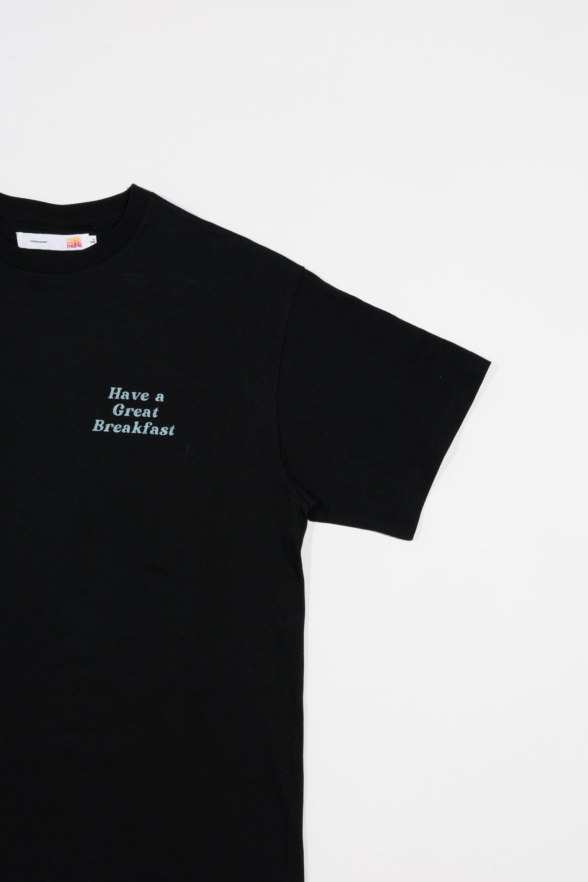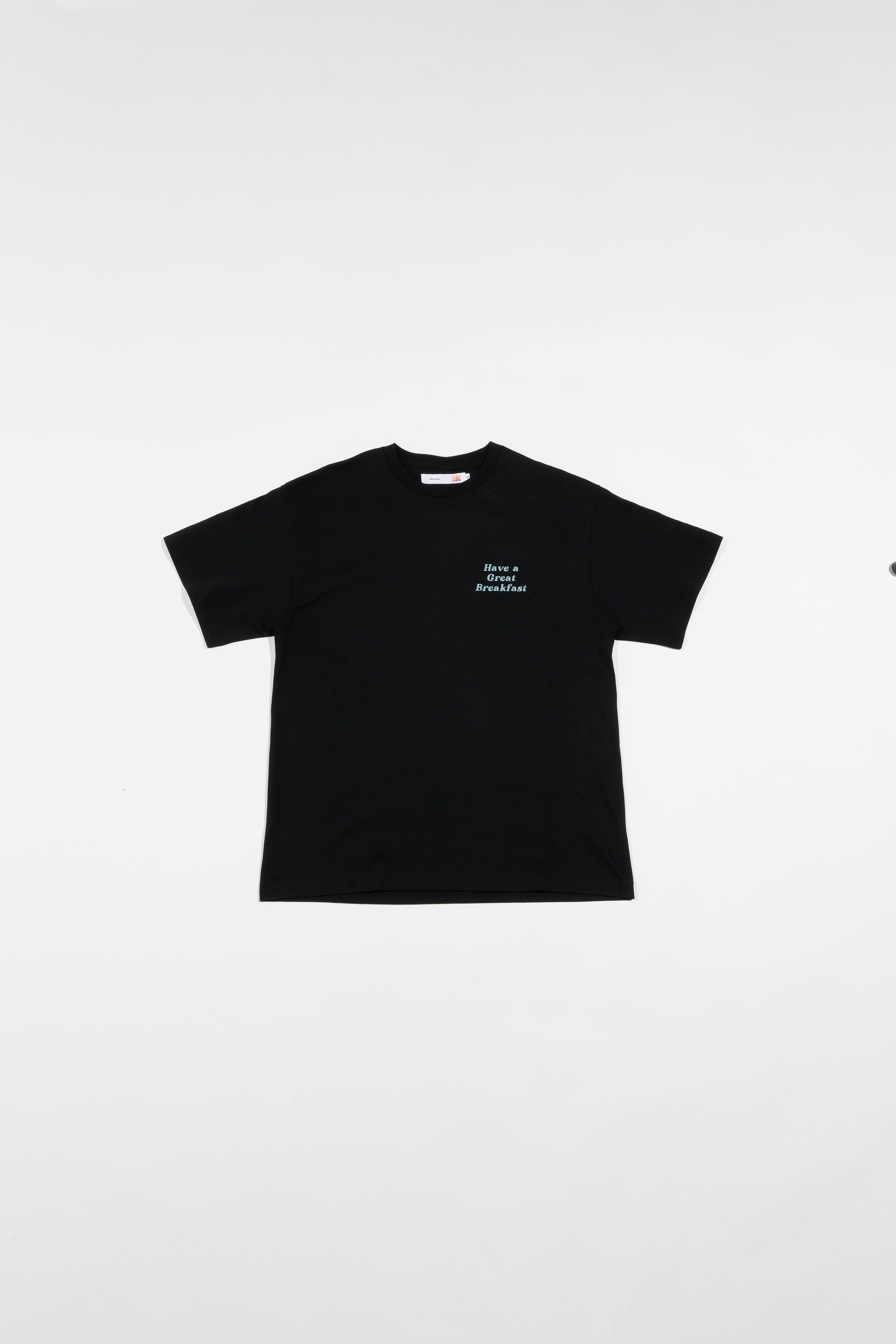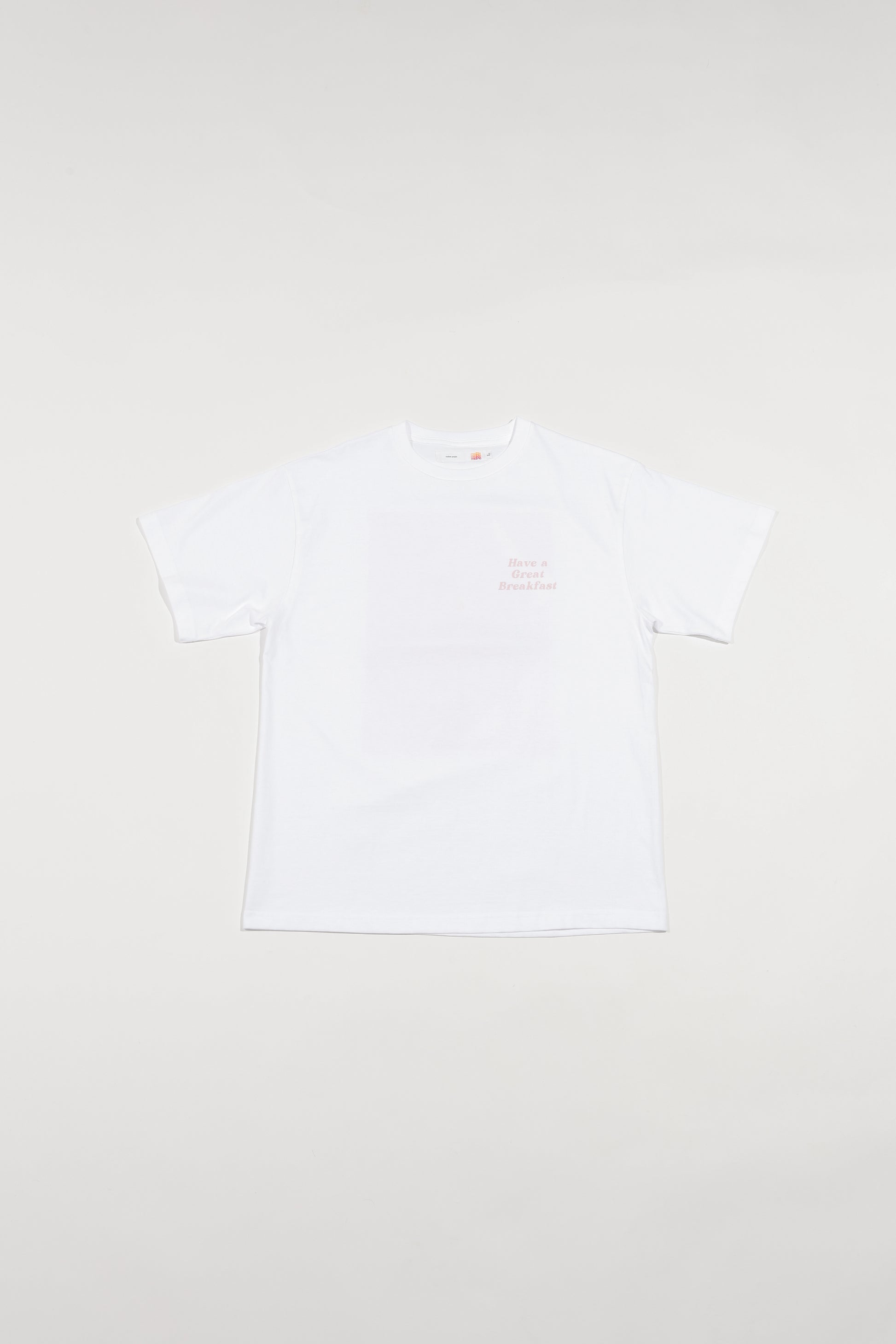 フロントにはHave a Great Breakfastのメッセージがチェーンステッチ風のプリントで入っている。