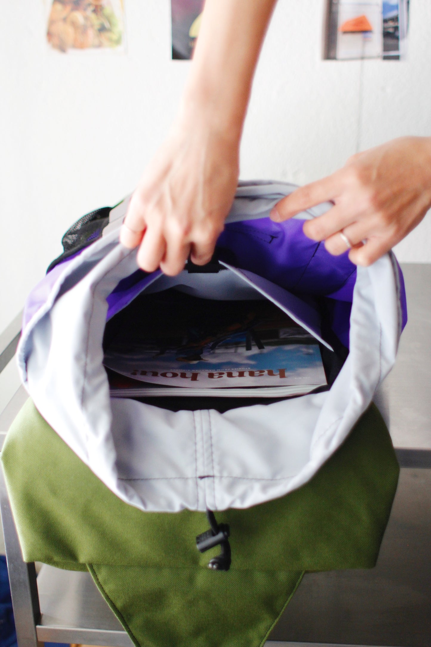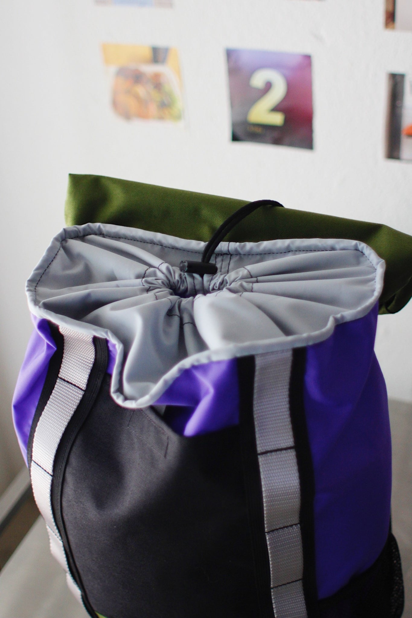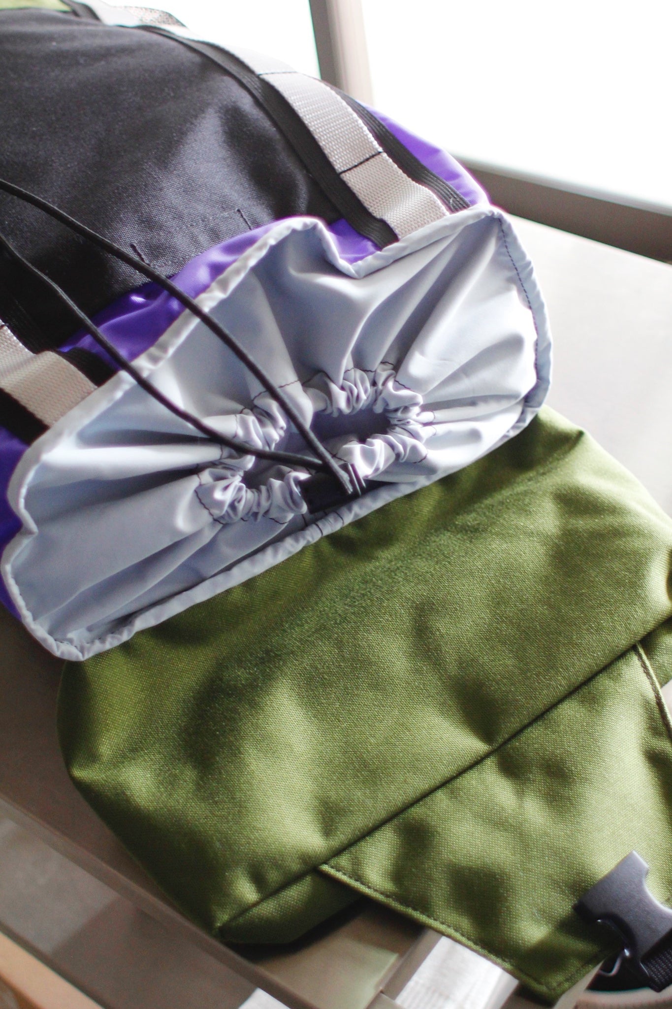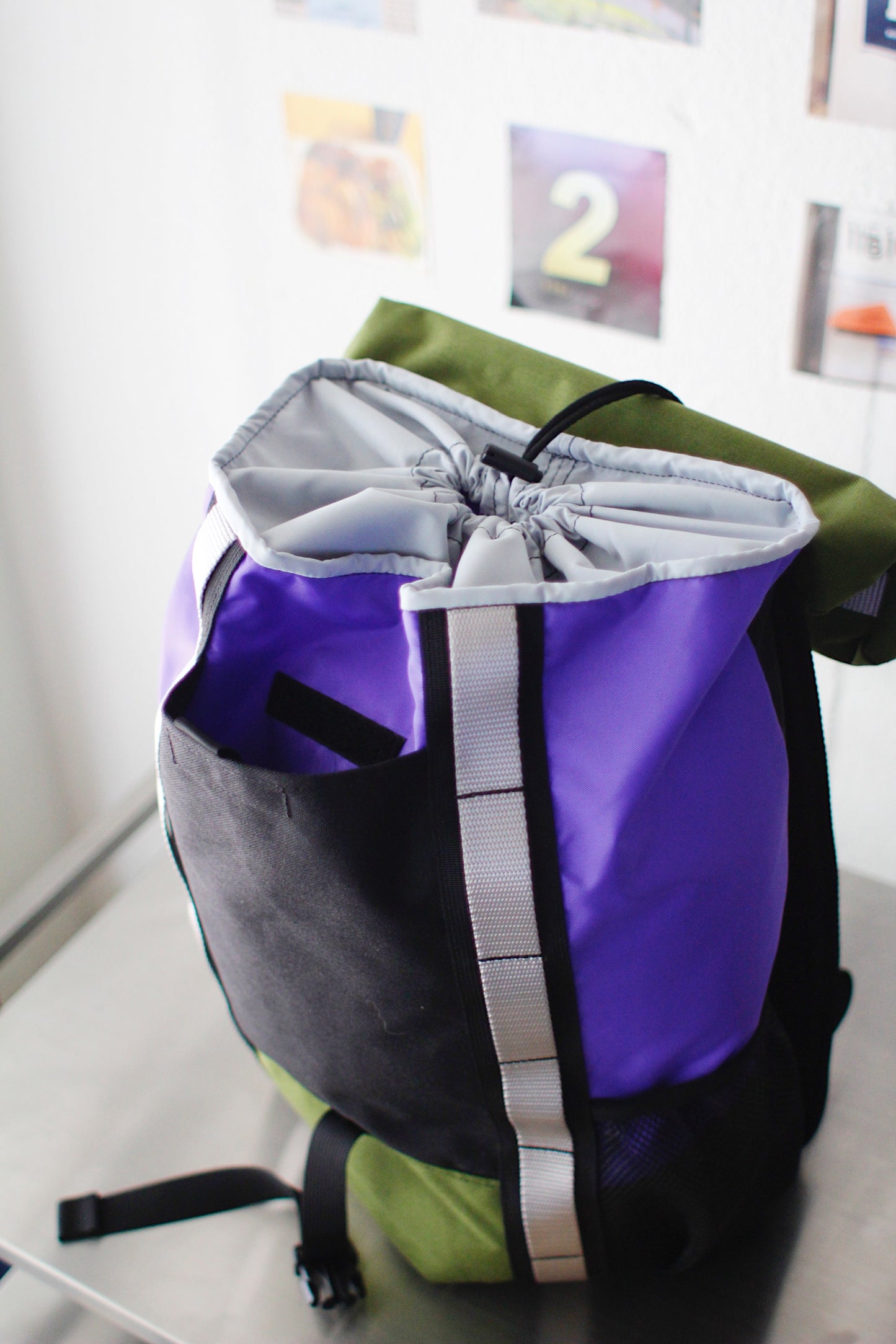 ドローストリング開きのメインコンパートメント。