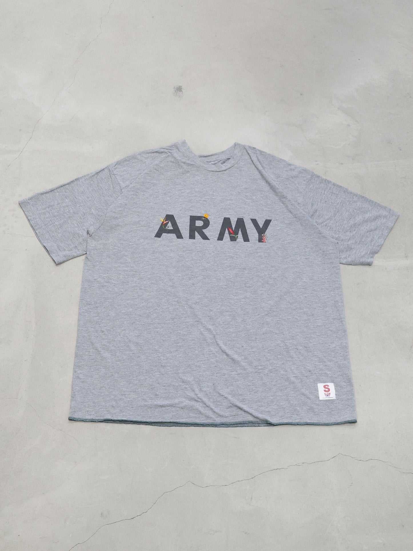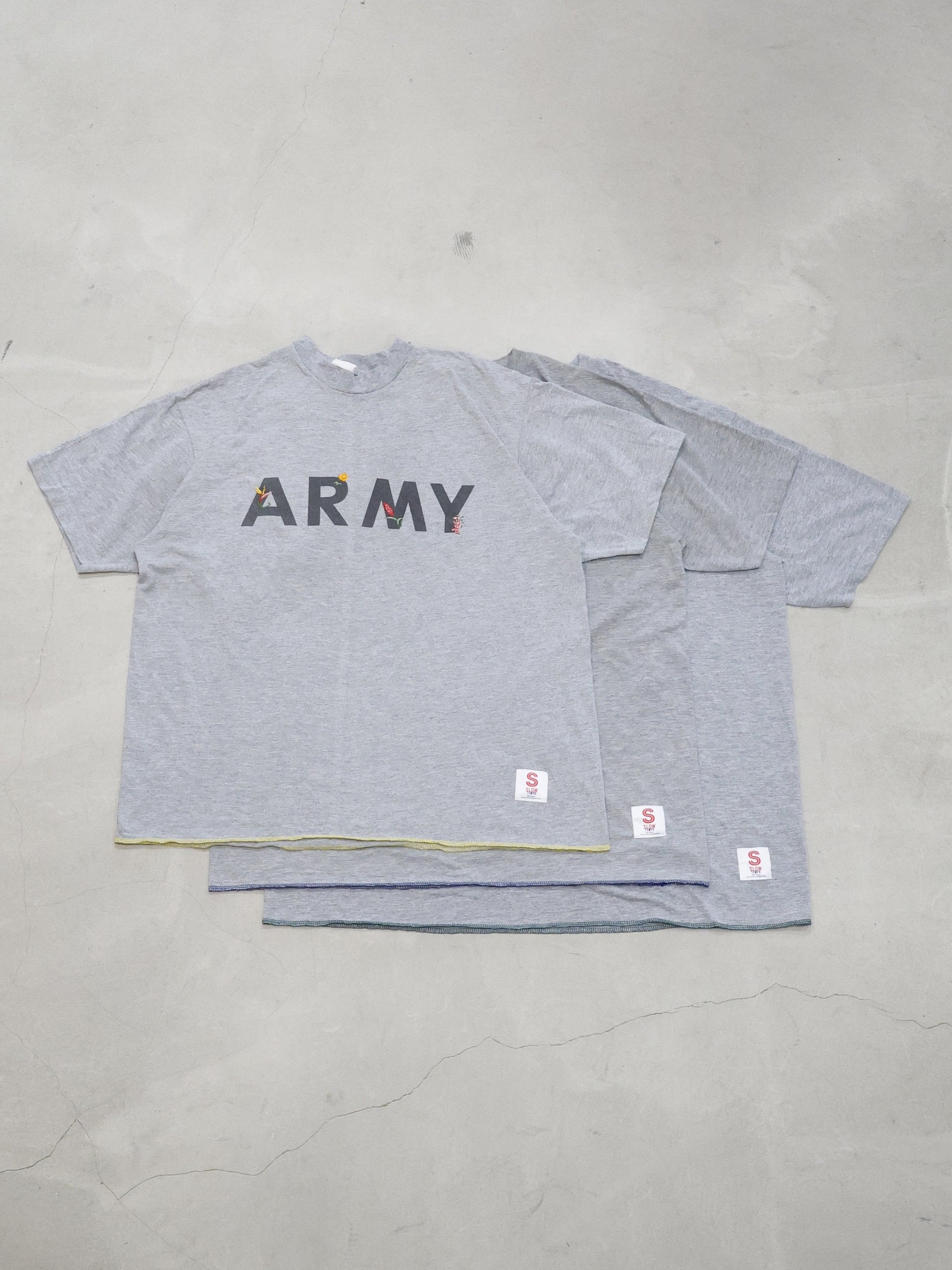 米陸軍がトレーニングする際に実際に着用していたミリタリーTeeシャツで霜降りグレーの程よい厚みが人気のTeeシャツをリメイクしています。