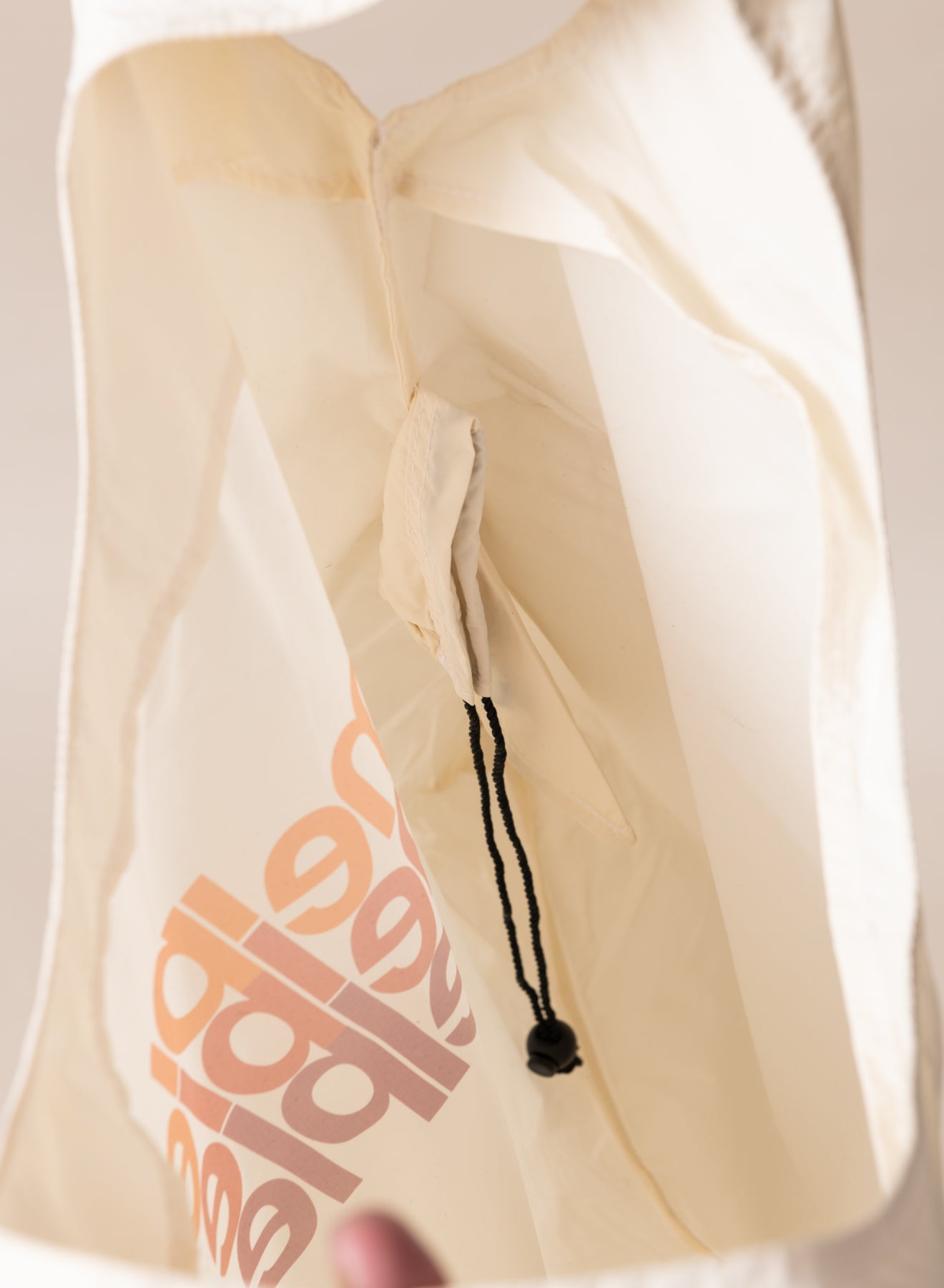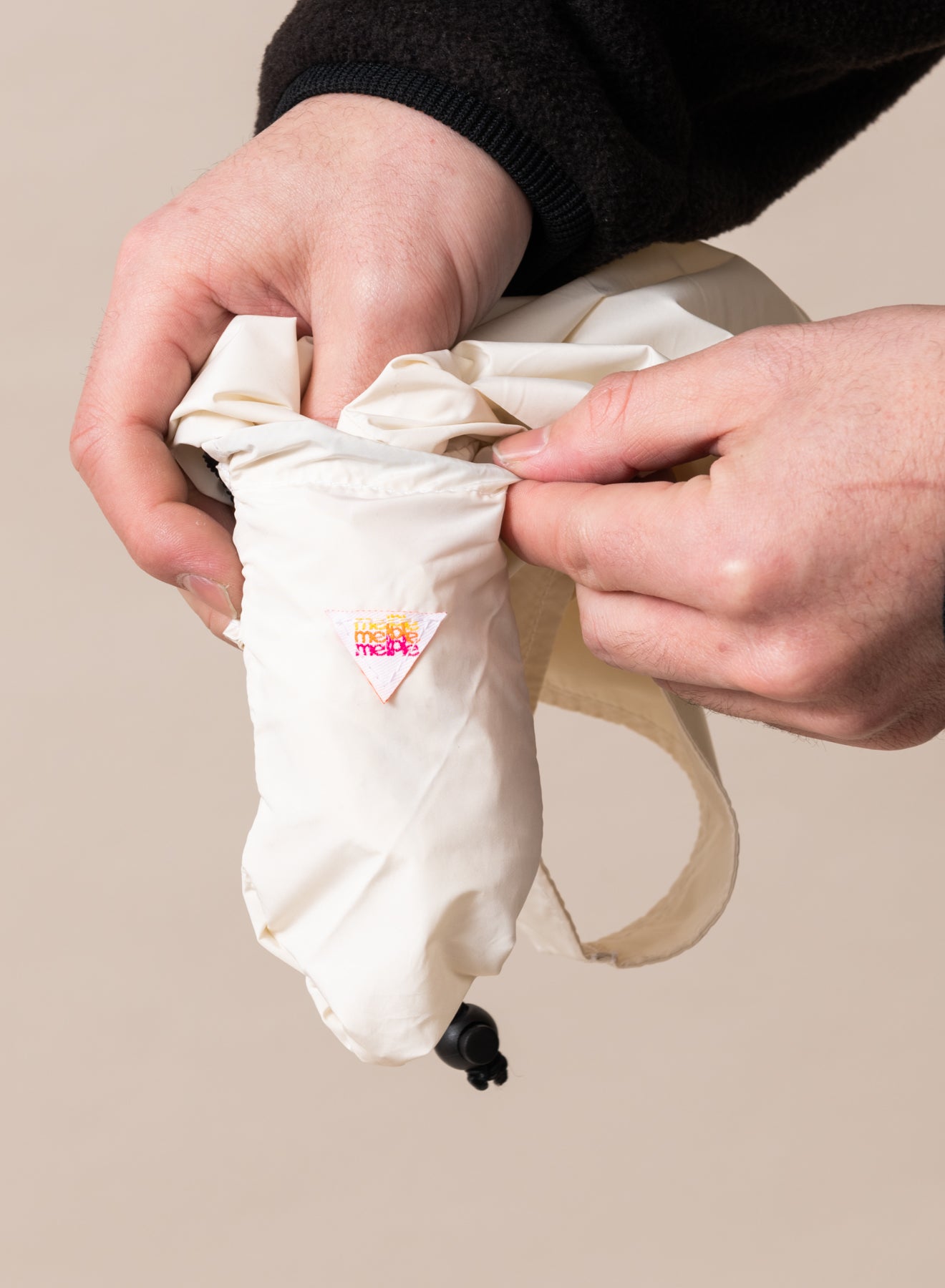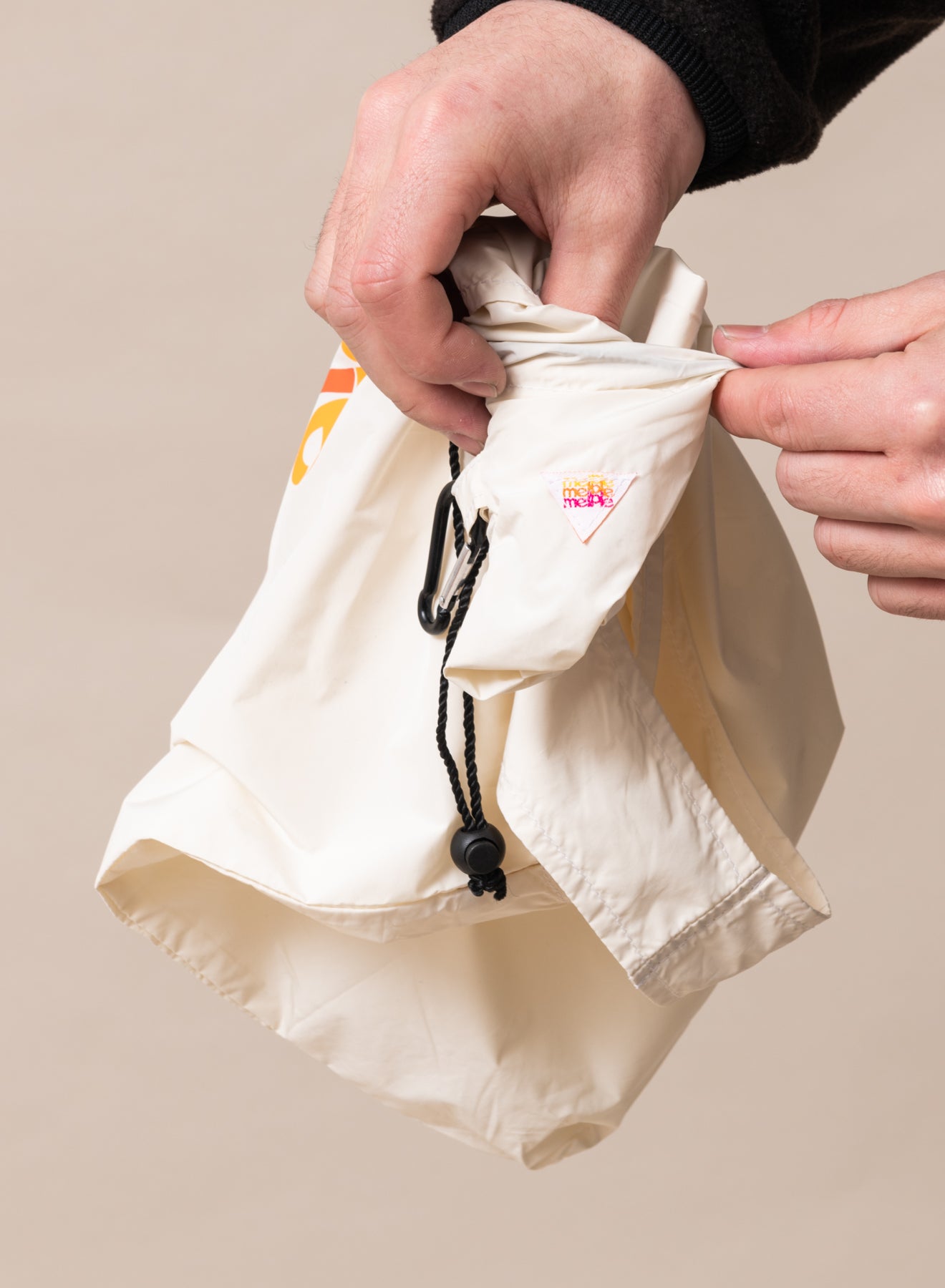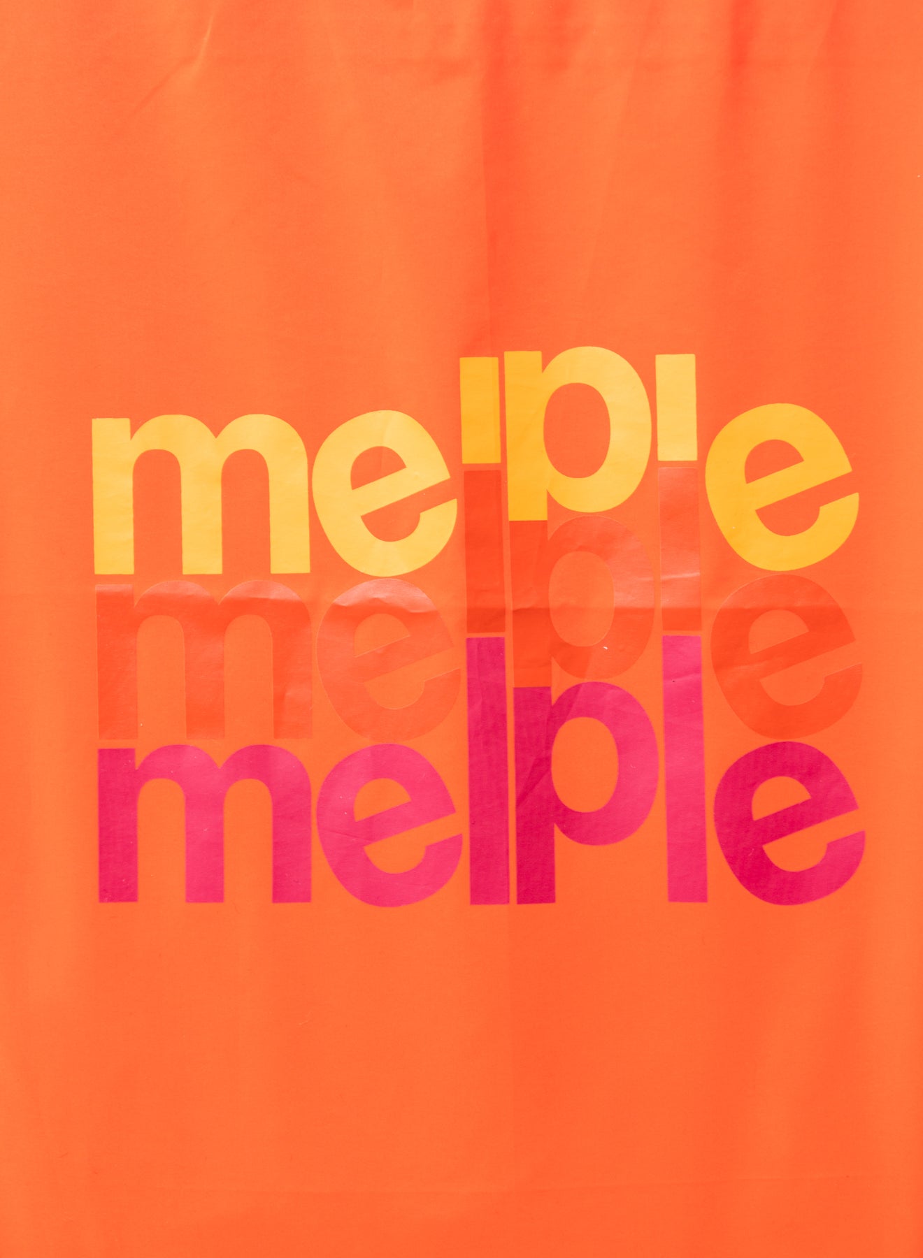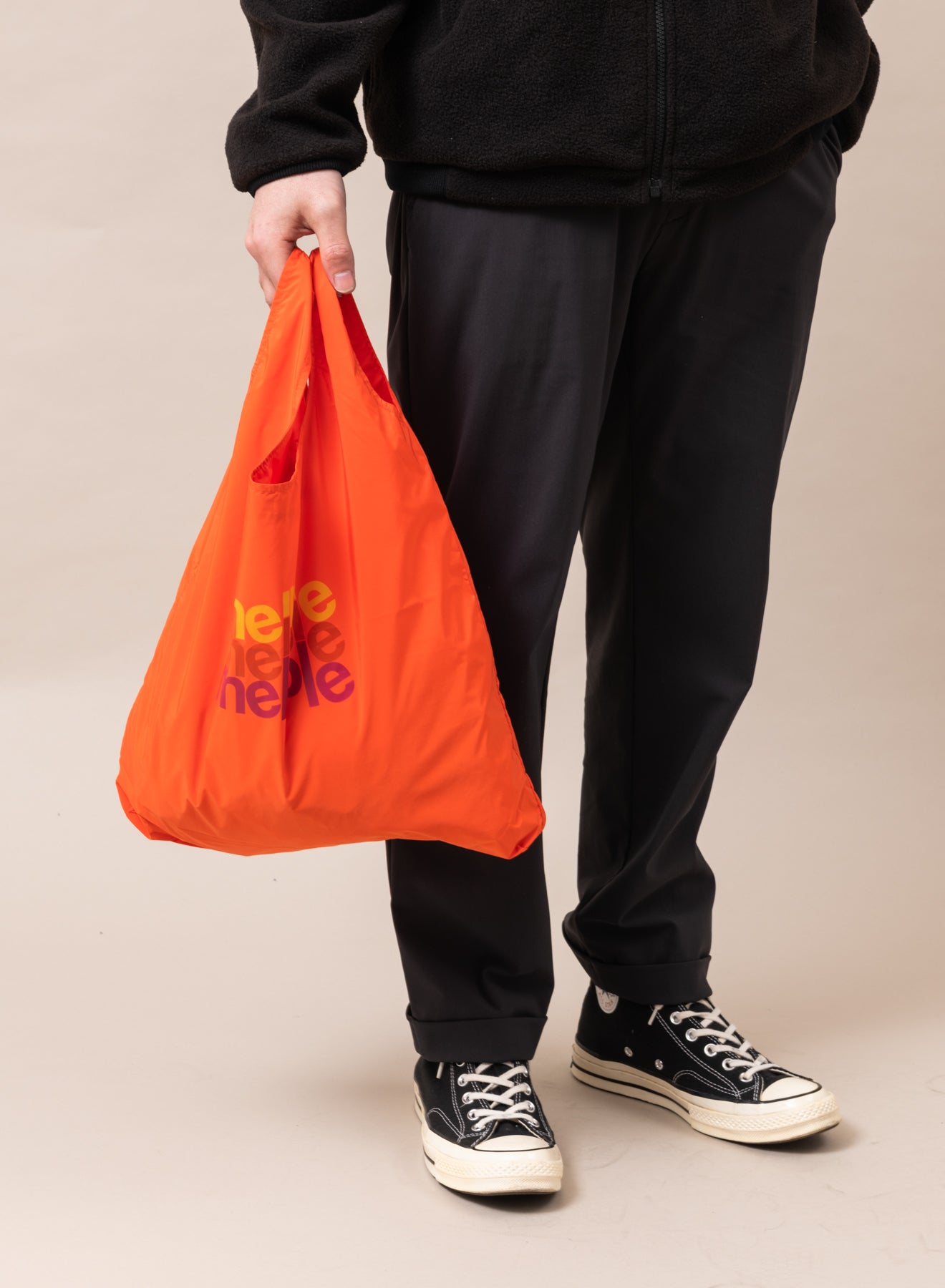 どのボディカラーにもバランス良いmelpleのカラーロゴ。のっぺりとした面構えのものが多いエコバッグだが、シンボルの3連ロゴで男女兼用できるデザイン。