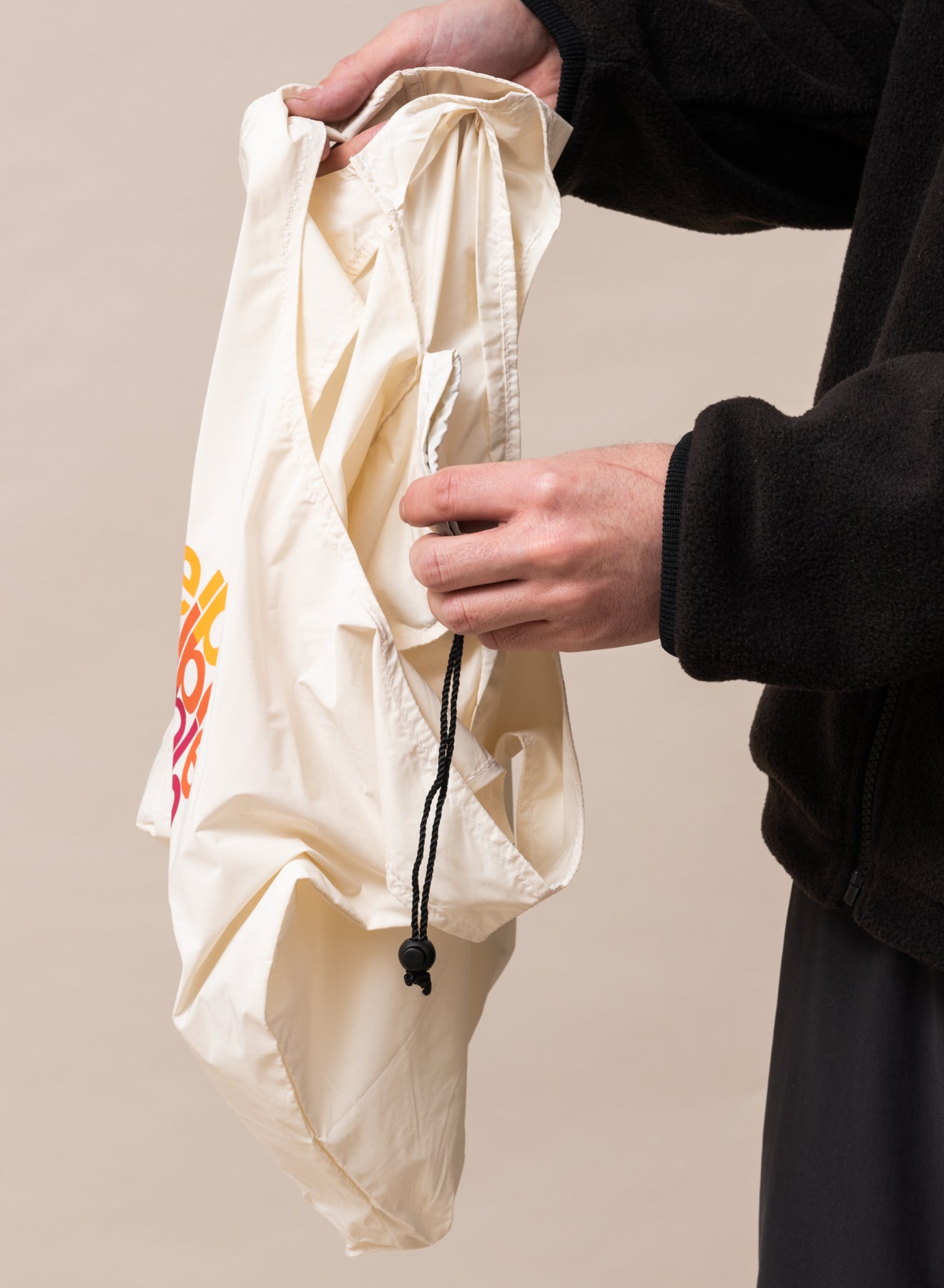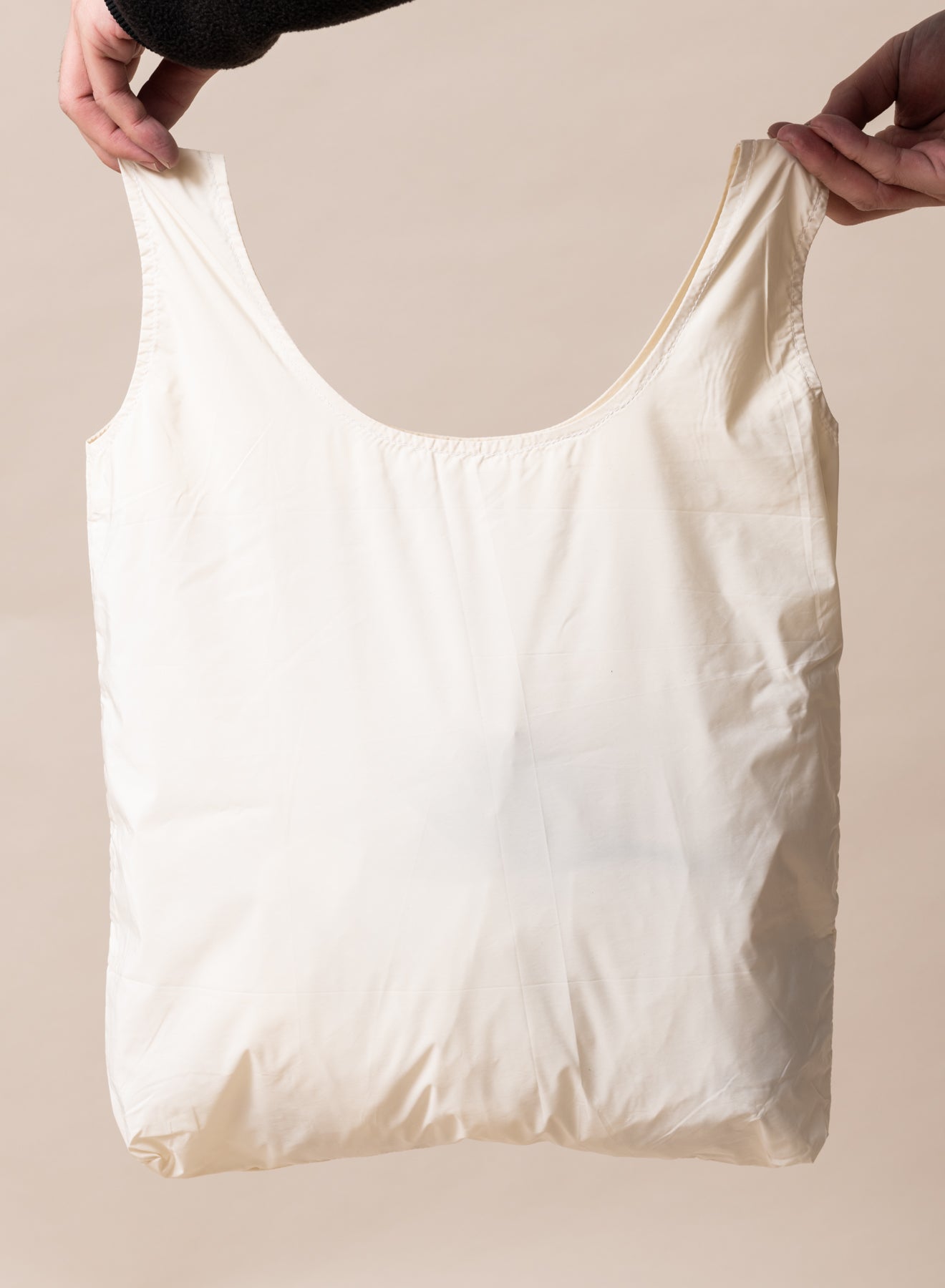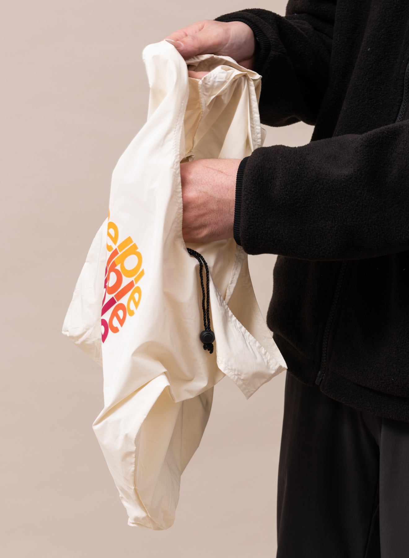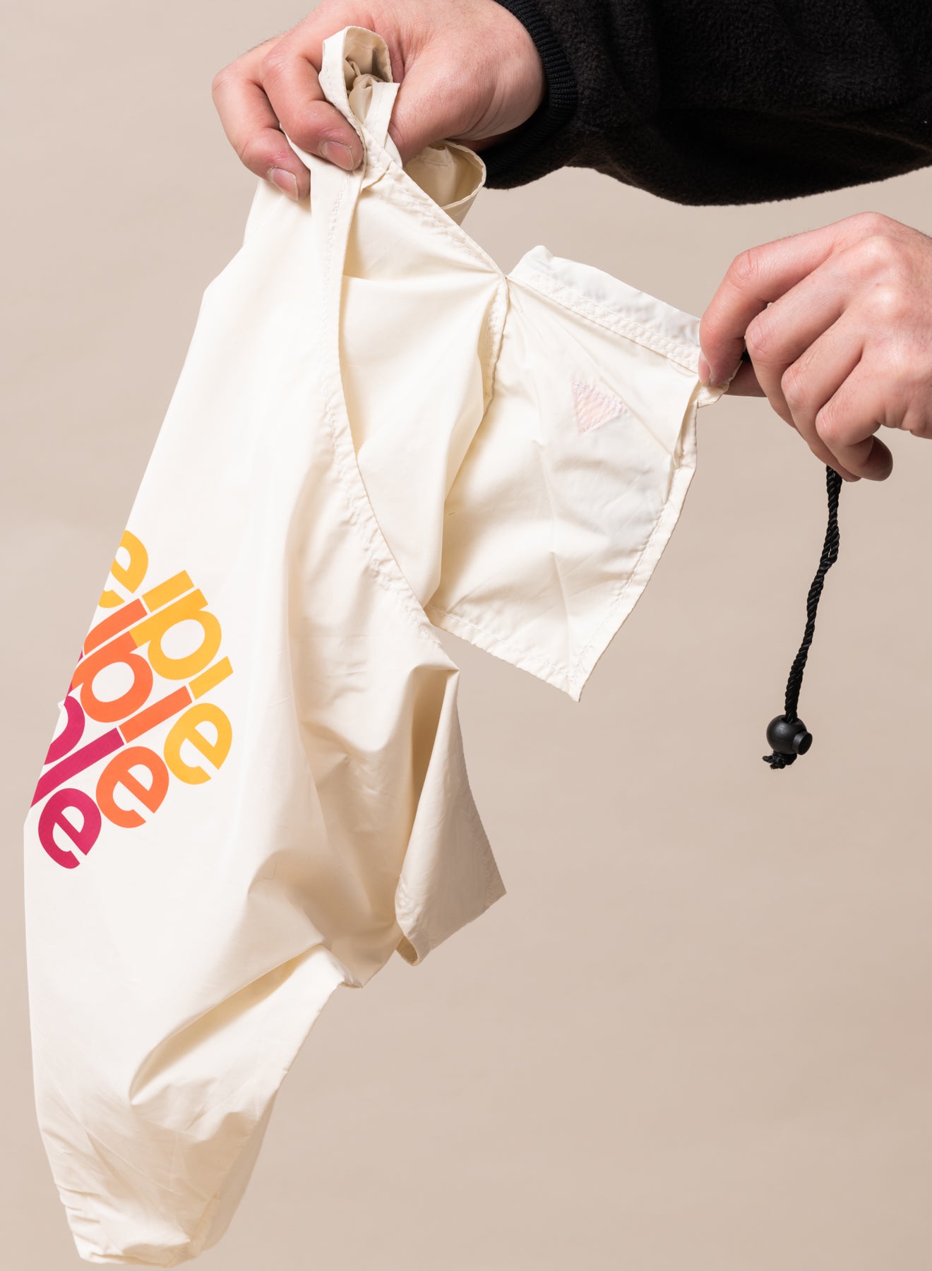 どのボディカラーにもバランス良いmelpleのカラーロゴ。のっぺりとした面構えのものが多いエコバッグだが、シンボルの3連ロゴで男女兼用できるデザイン。