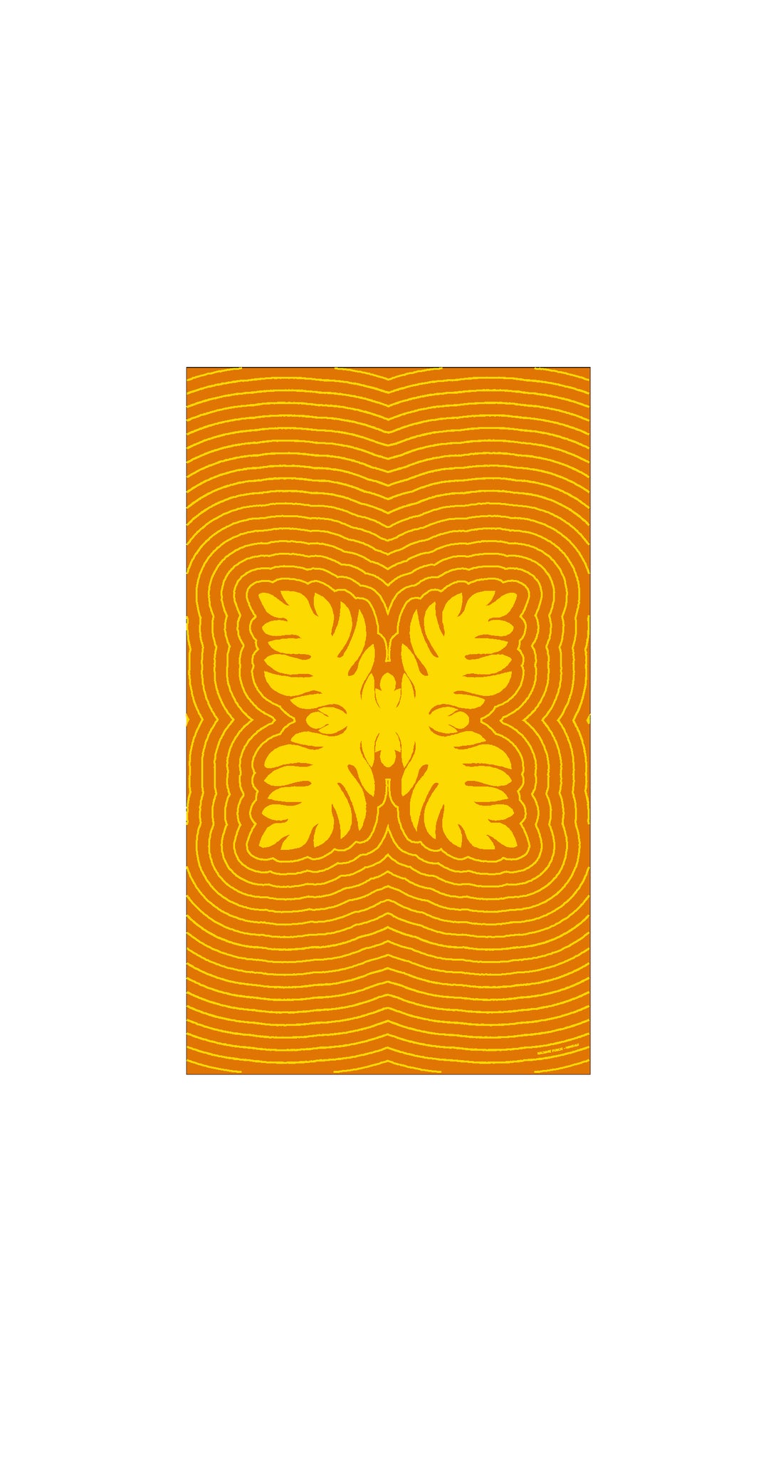 Laua'e(ラウアエ)柄をハワイアンキルトのエコー ステッチと呼ばれる輪郭をステッチするデザインを表しています。