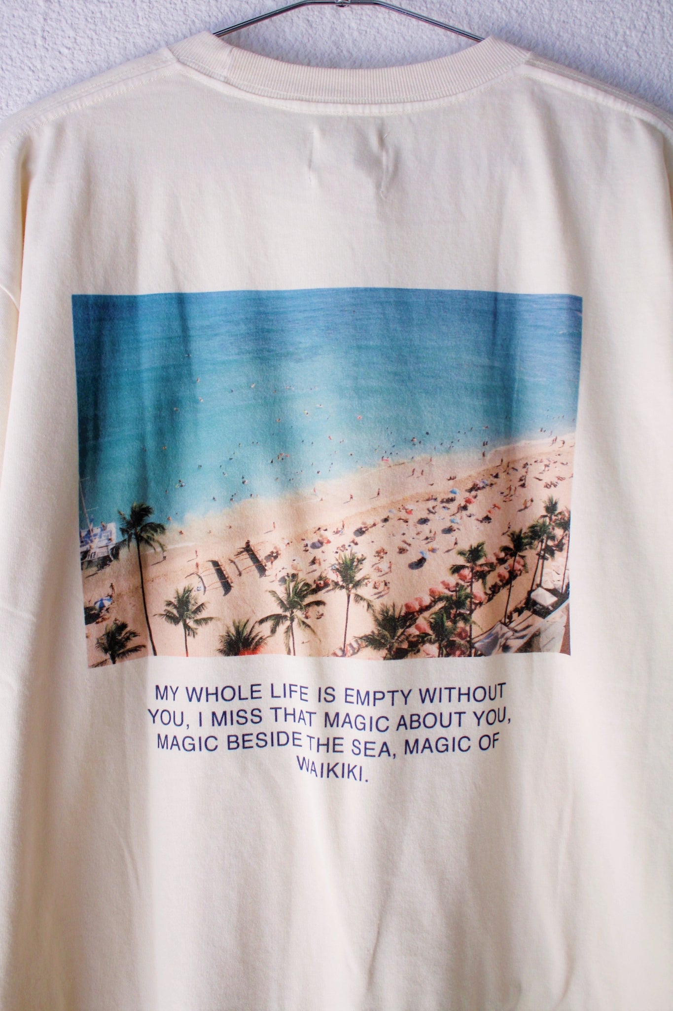 SALVAGE PUBLICデザイナーのJOEとは、共にタウン(ホノルル)に住む事からアラモアナビーチパークやダイヤモンドヘッドで一緒にサーフィンをして楽しんだりと、クリエイター仲間として交友を重ねている。