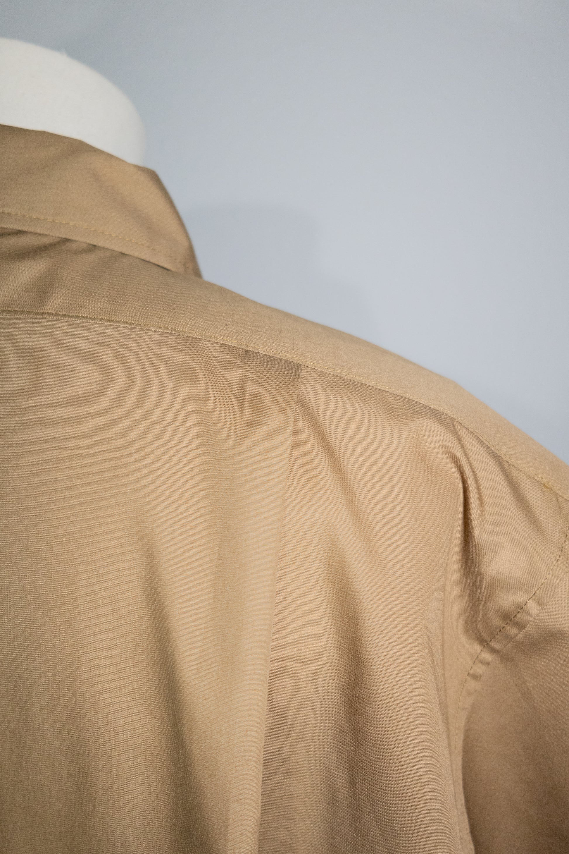 適度なハリ感のあるT/Cブロードを使用したオーセンティックな雰囲気と程よくゆとりを持たせたシルエットでリラックスした印象に仕上がっている。