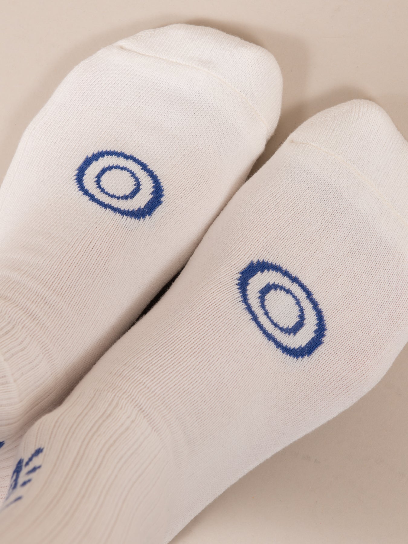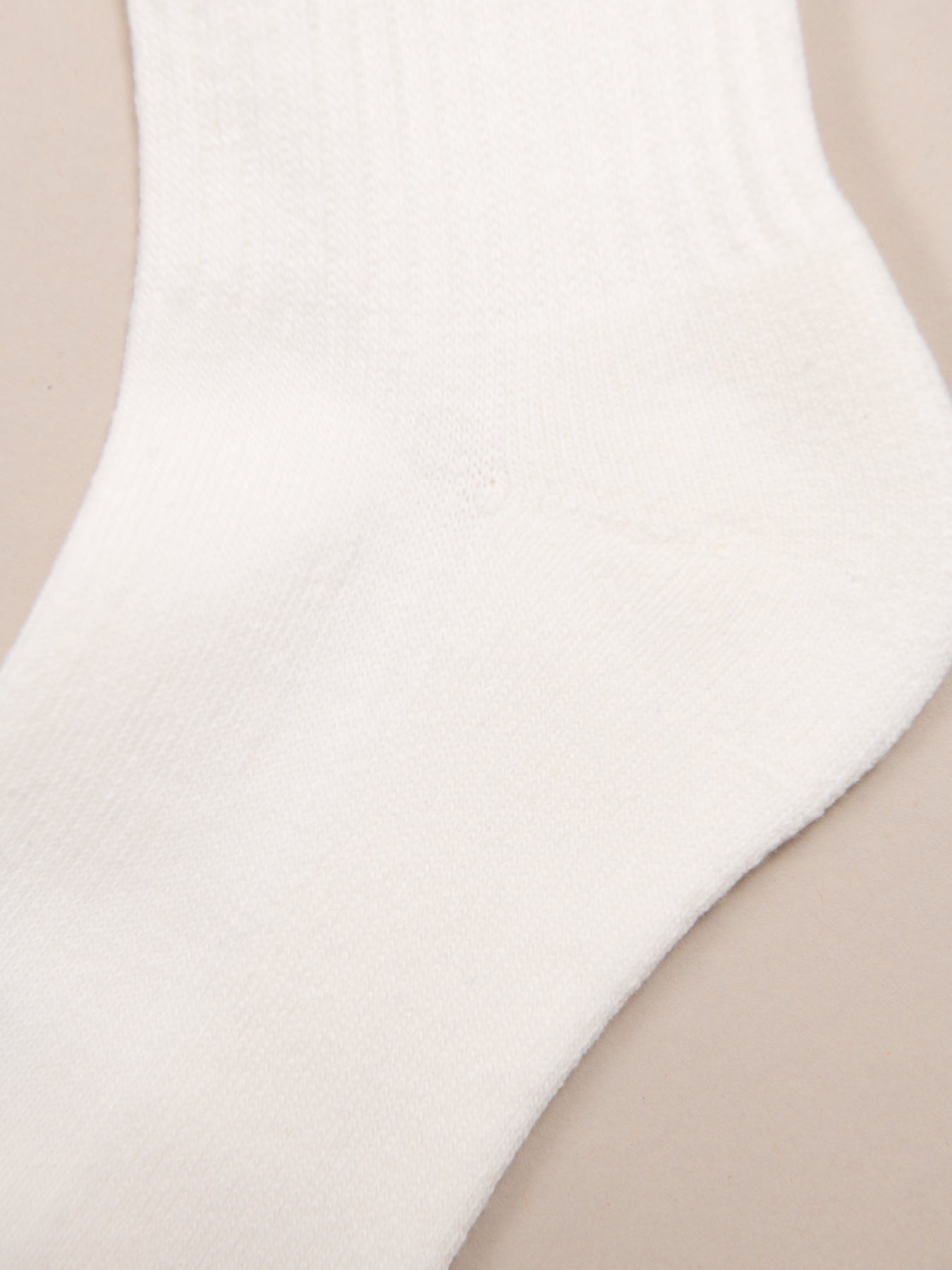 双糸を2本取りではなく単糸を5本取りすることによって、肉厚で目の詰まったヘビーコットンソックスを作ることを実現しました。