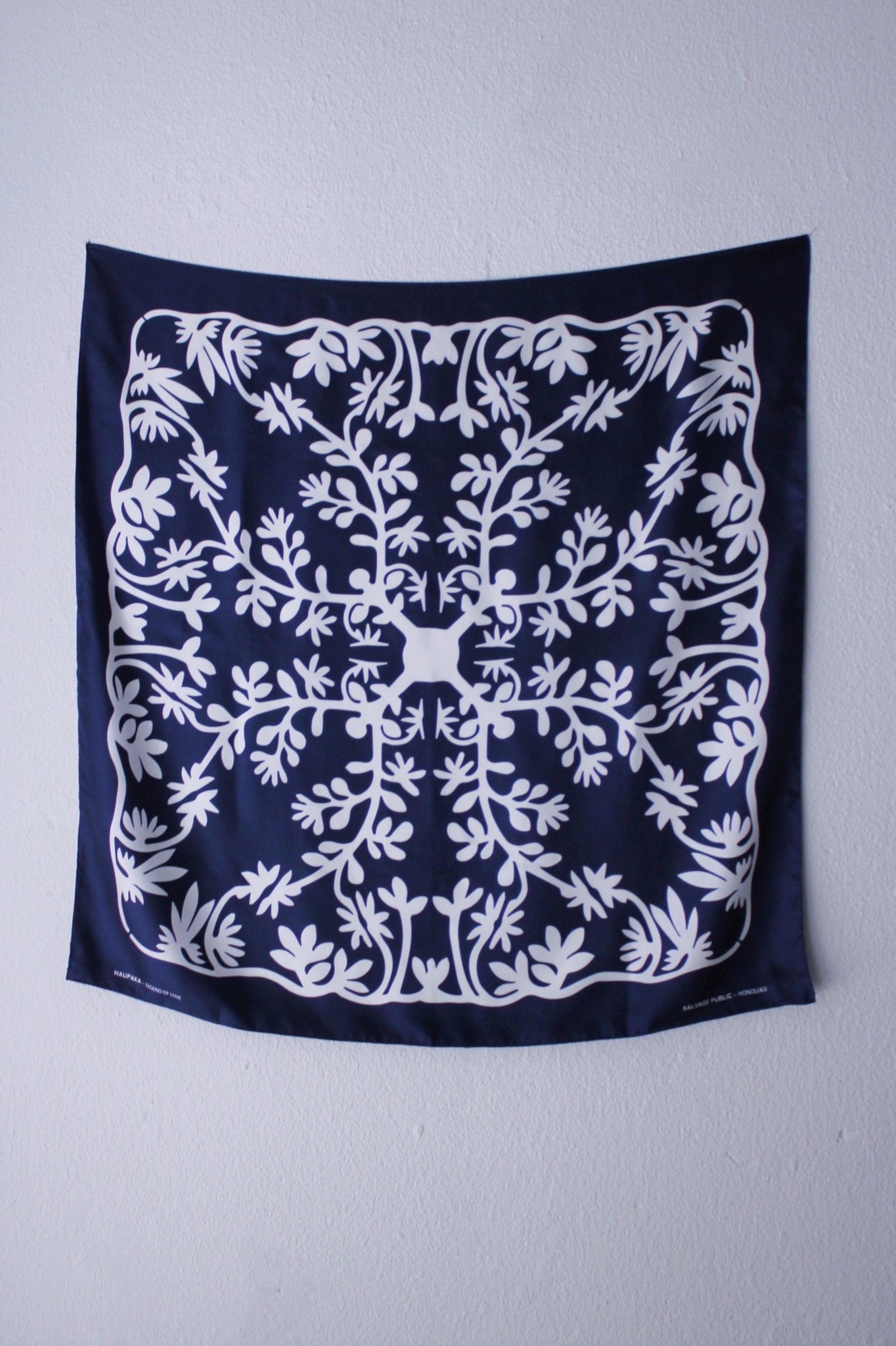 伝統的なハワイアンキルト柄(Naupaka柄)を日本のスカーフの産地でもある横浜で作ってもらったシルクスカーフが気に入ってます。