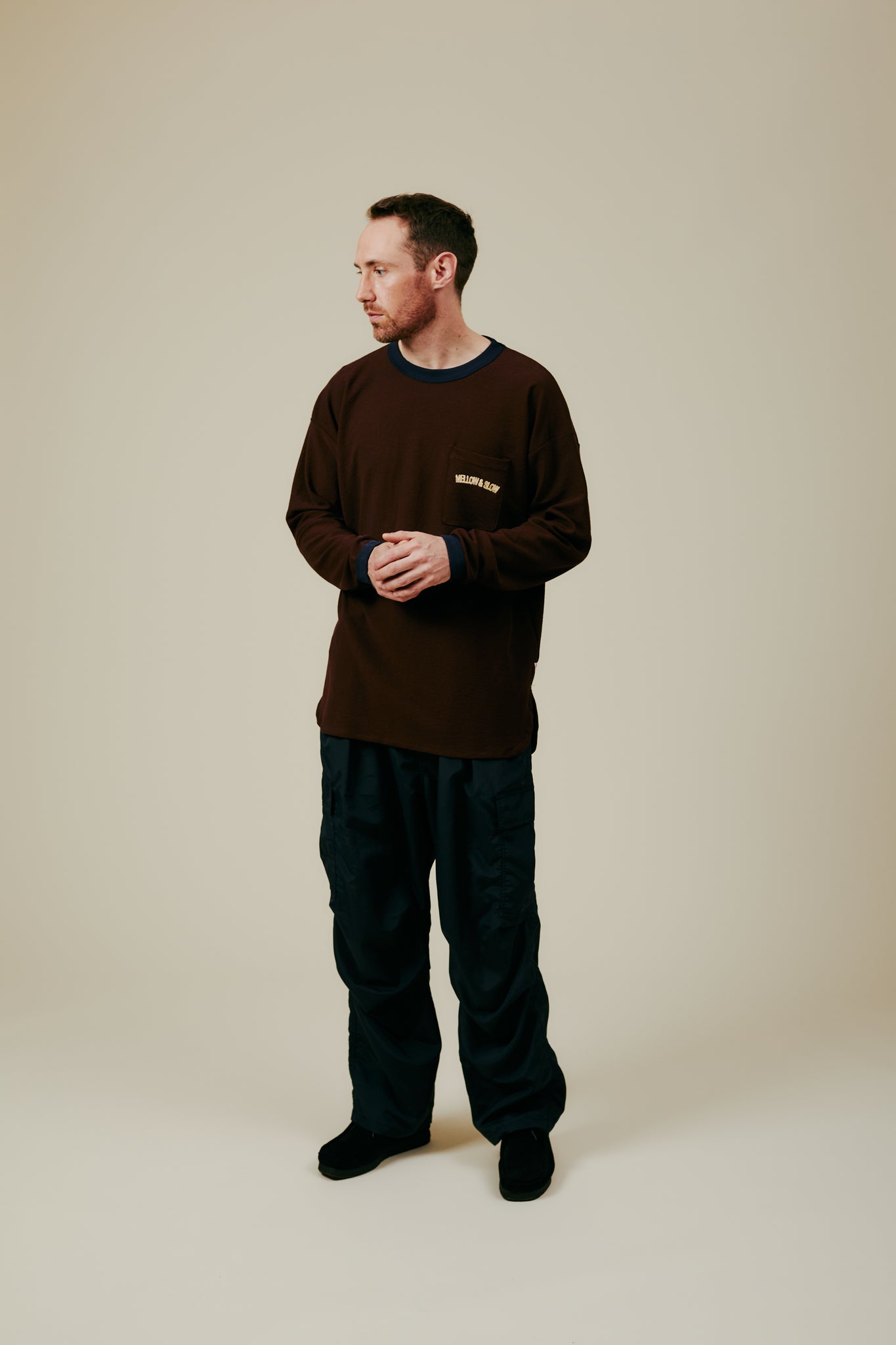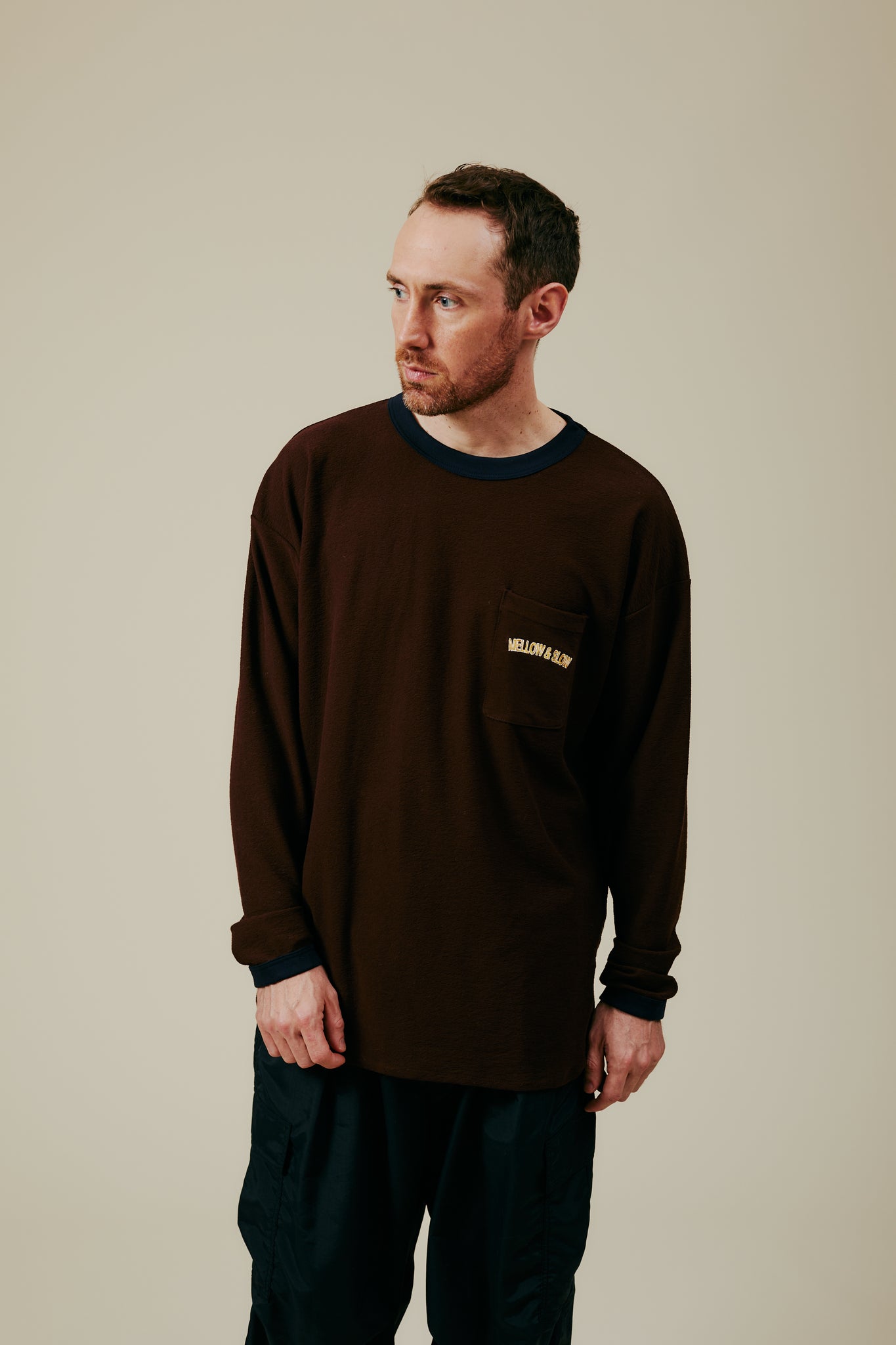 左胸にはMELLOW&SLOW刺繍入り。