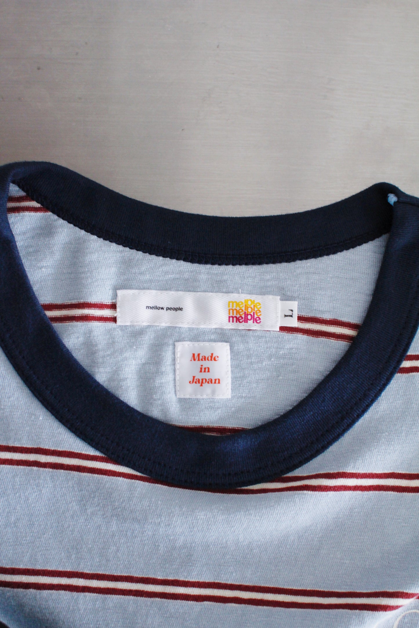 超長綿の落ち綿をリサイクルして和歌山で編まれたマルチボーダーは少しレトロな雰囲気がたまりません。