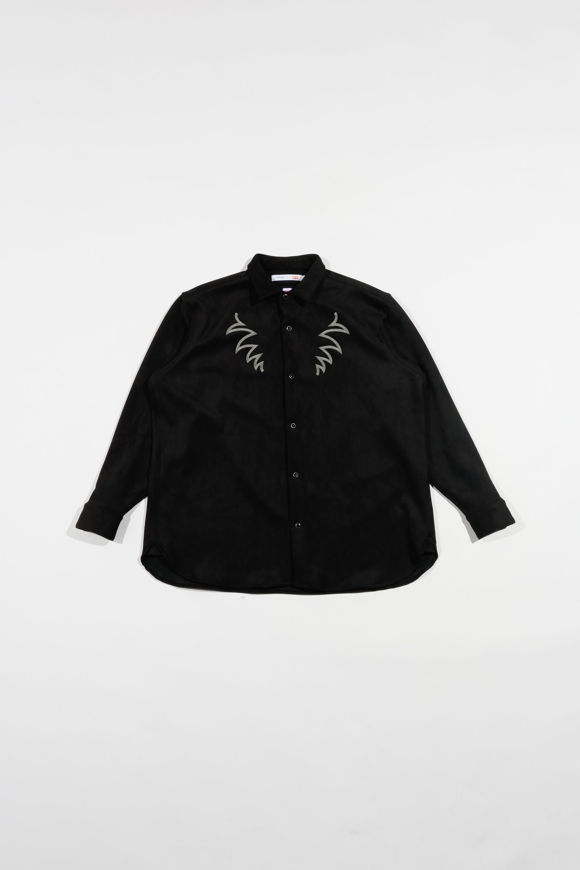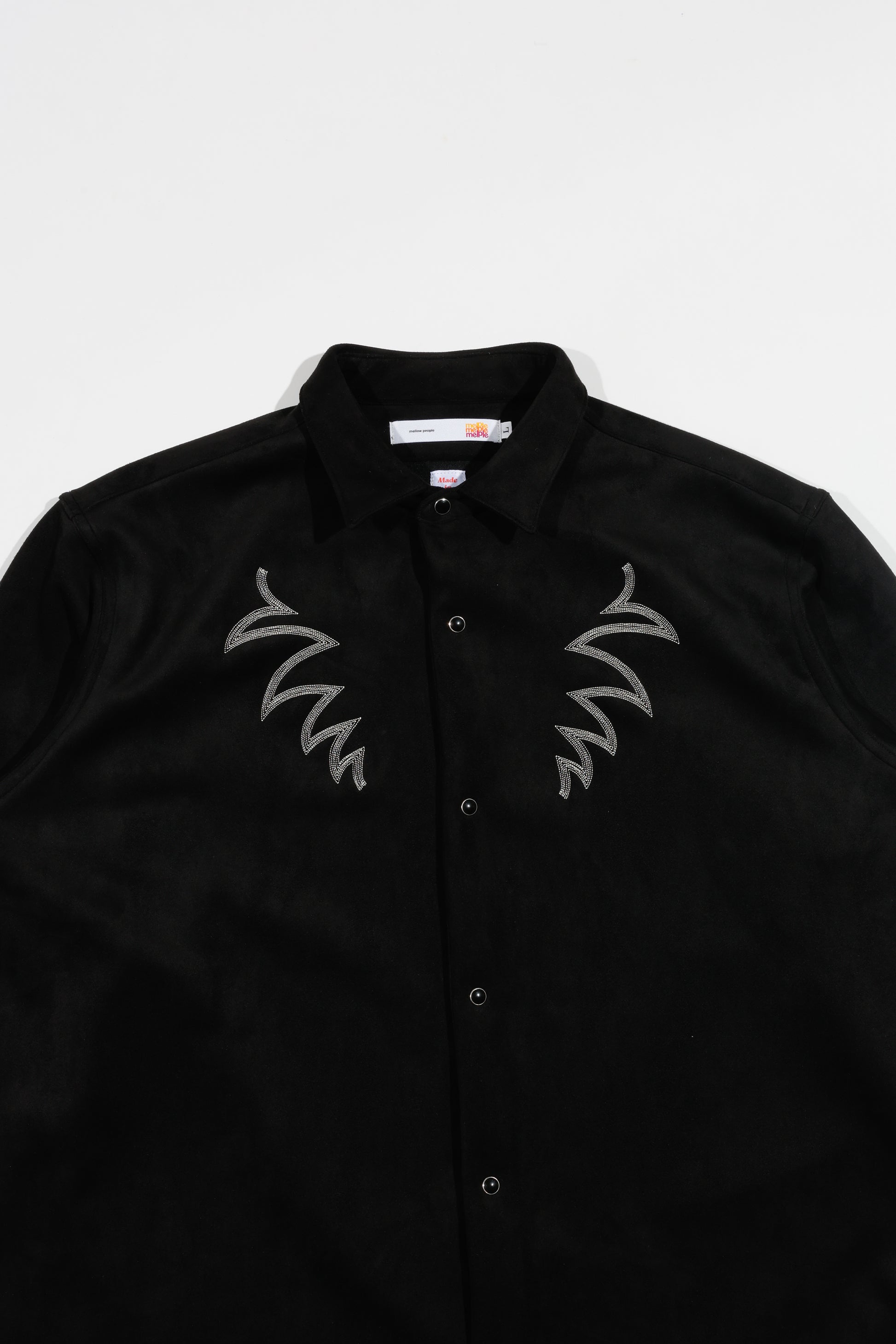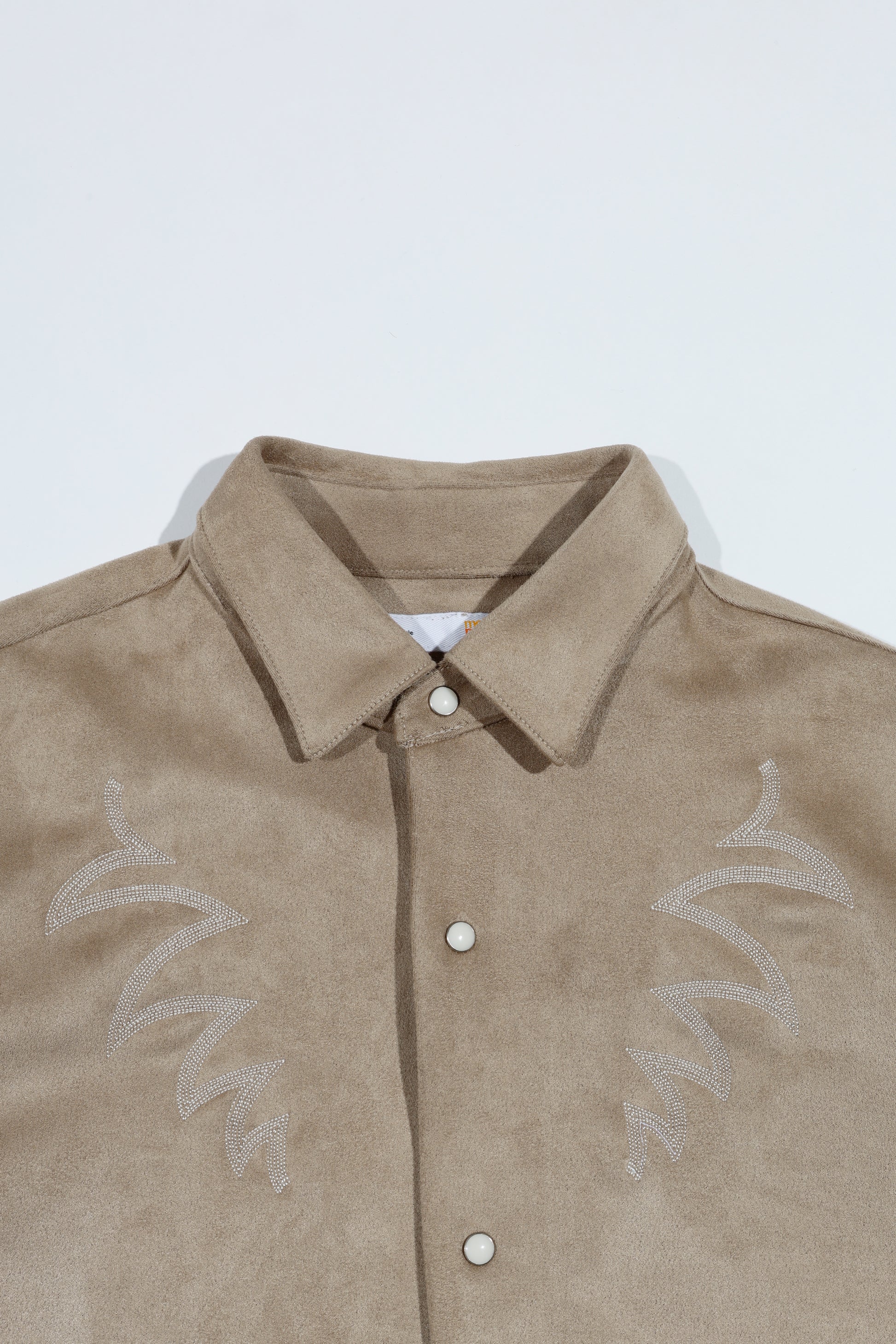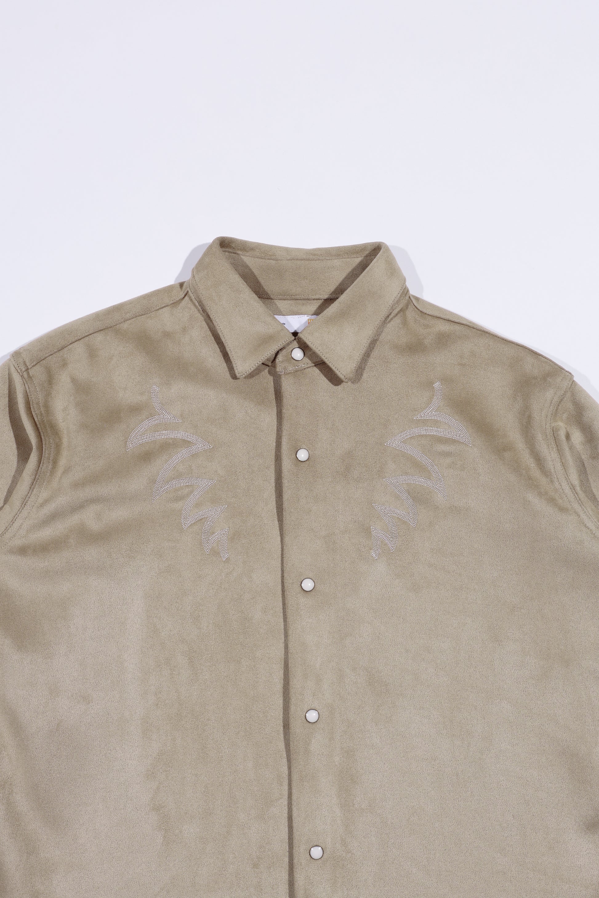 South Westernの雰囲気をモダンにUPデートしたスウェードシャツ。