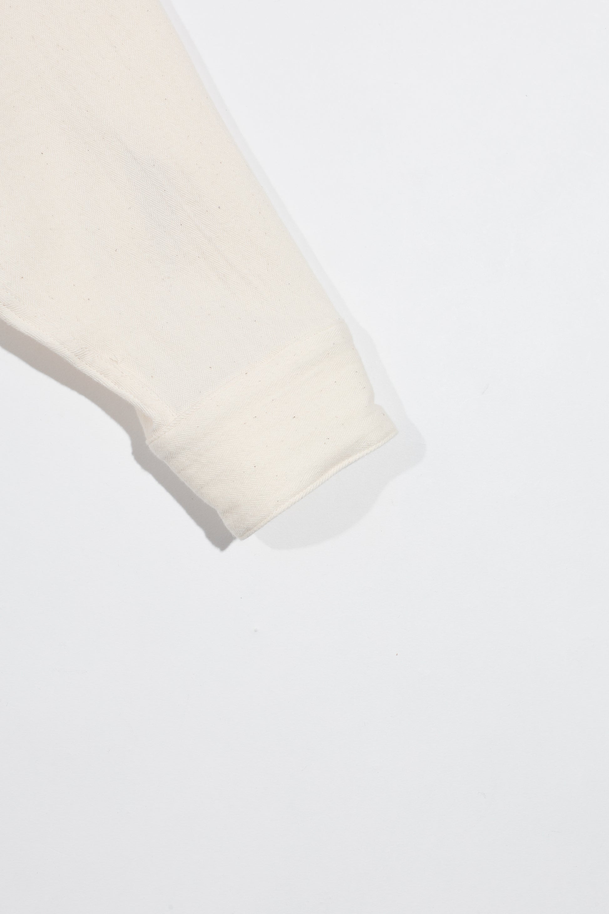 オーセンティックでありながら少しリゾートな雰囲気を醸し出す二重織のコットンヘリンボーンは長時間をかけて生地にストレスを掛けずに染め上げており、独特の膨らみが心地良い。