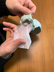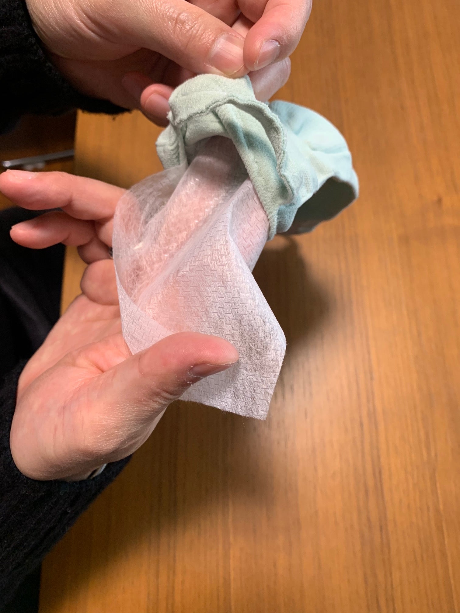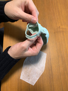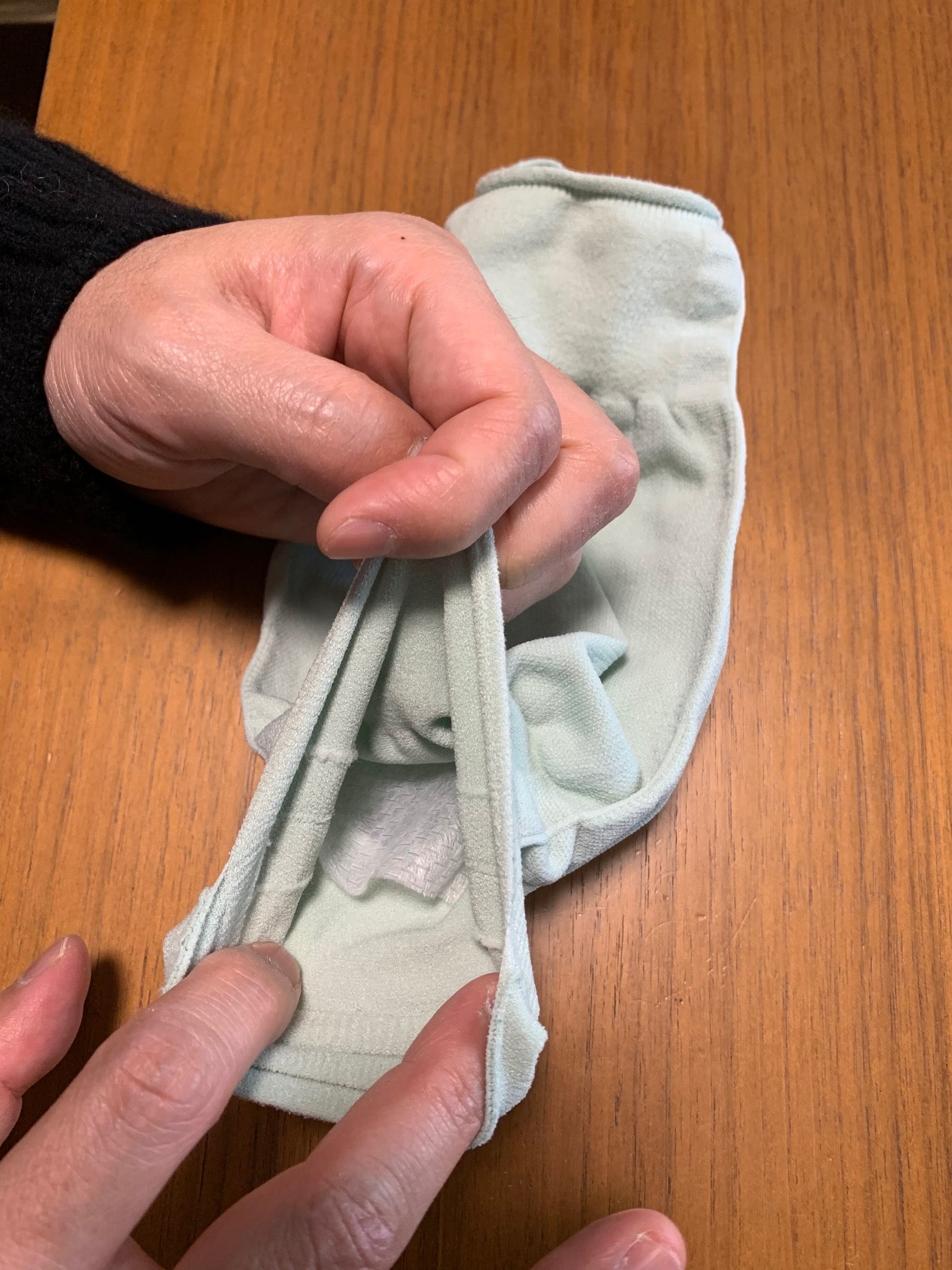 ④二重構造式によりフィルターなどを装着可能。市販の抗菌フィルターを装着して着用することができます