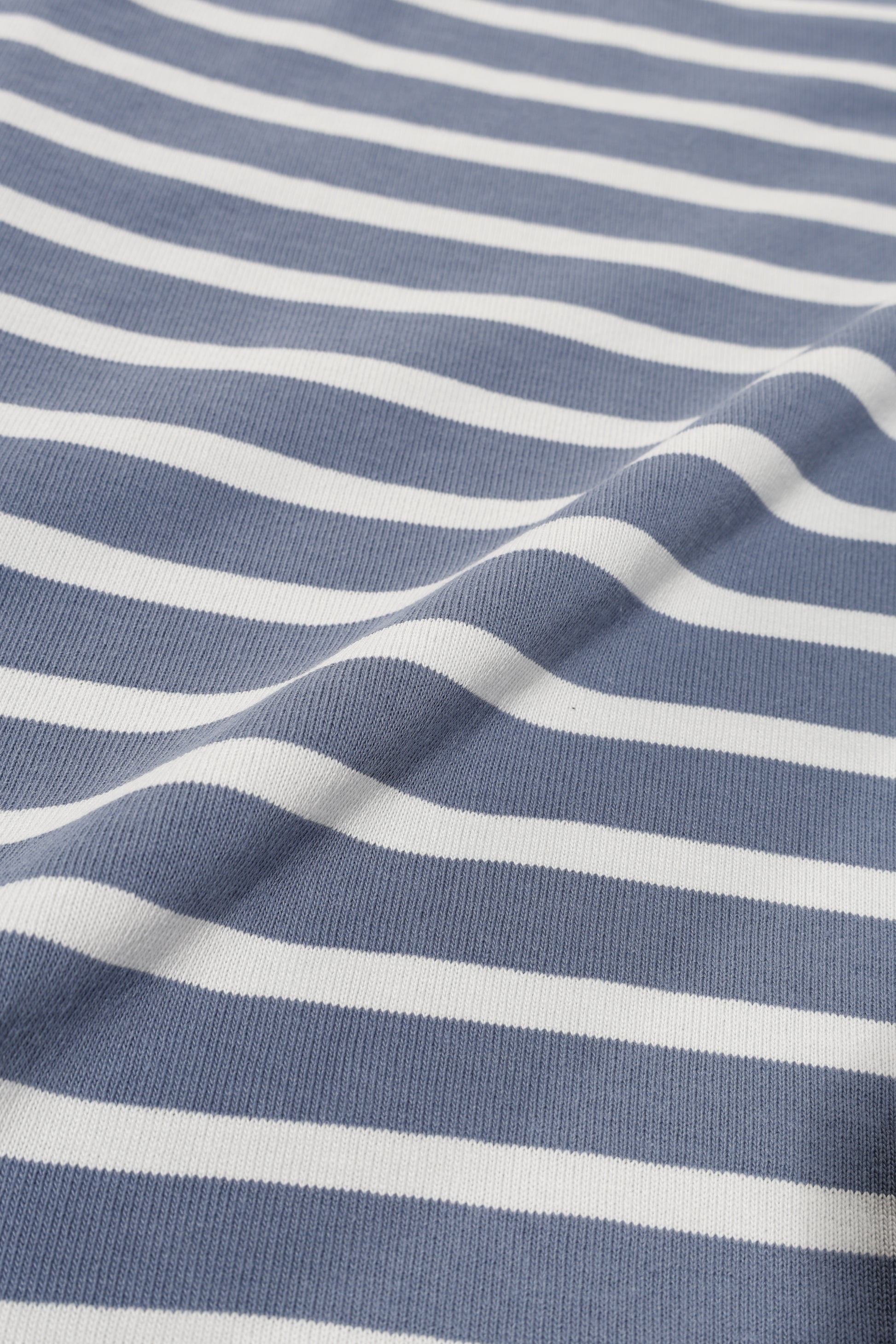 米綿のオープンエンド17番単糸を引き揃えて度詰めに編み立てた生地はドライタッチでハリ、コシのあるヘビーウェイトな仕上がりで80~90年初頭にアメリカ製で作られていたTeeシャツを彷彿させます。