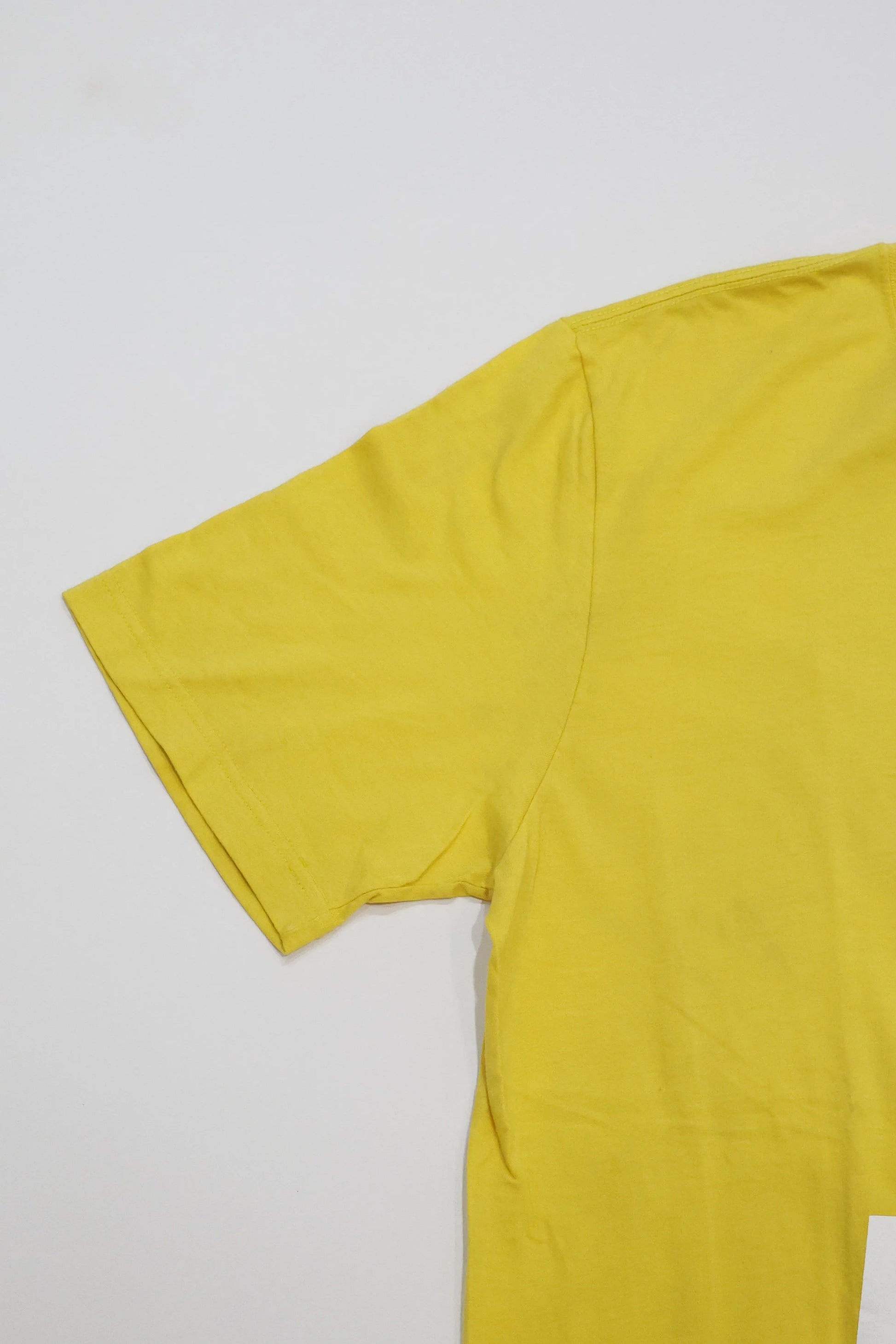 鮮やかなイエローボディに、ホワイト×ブルーのコントラストが映える一枚。ボディは「NIKE FIT」仕様の吸湿速乾素材で、アクティブな日常にもぴったり。