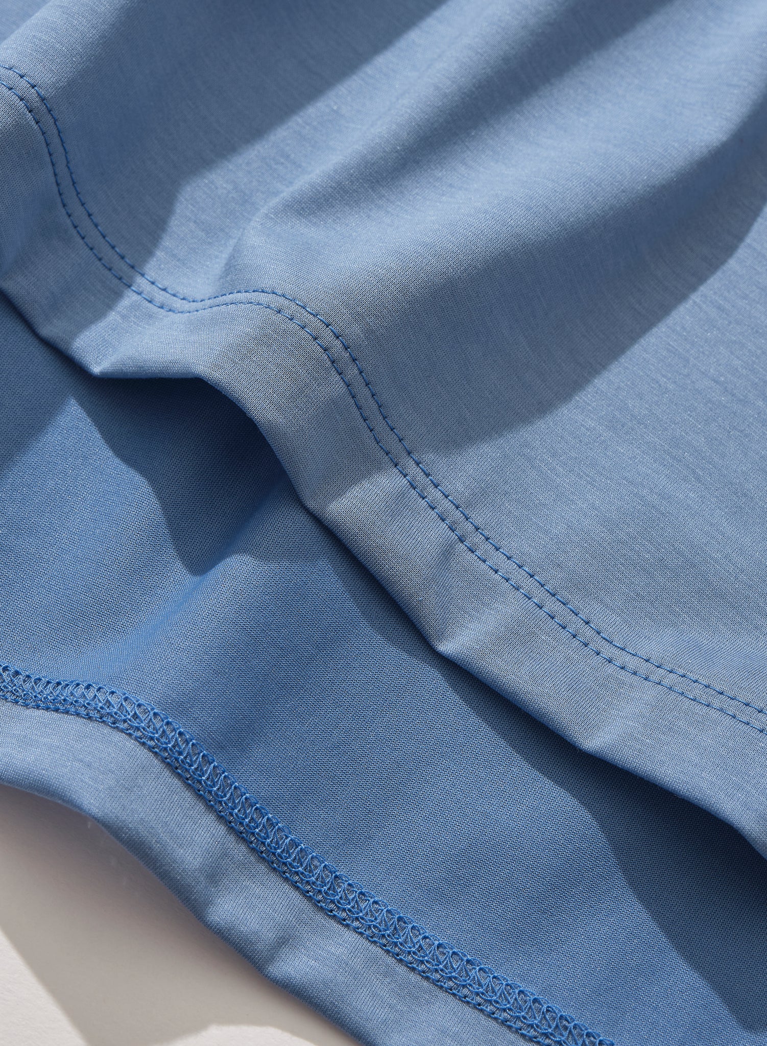 ハーフスリーブ丈で上品でリラックスしたスタイルに仕上げている。