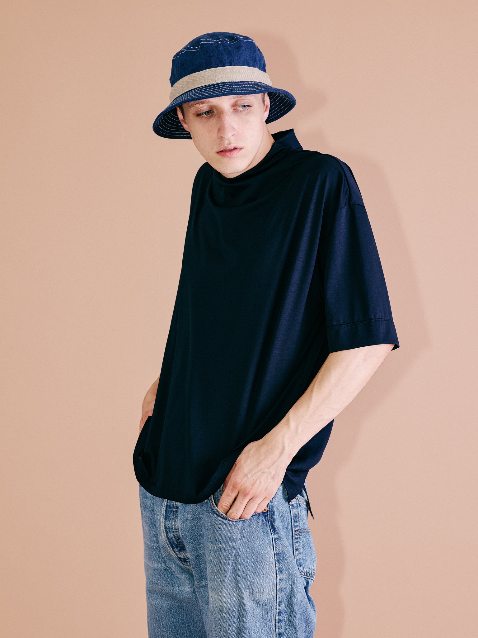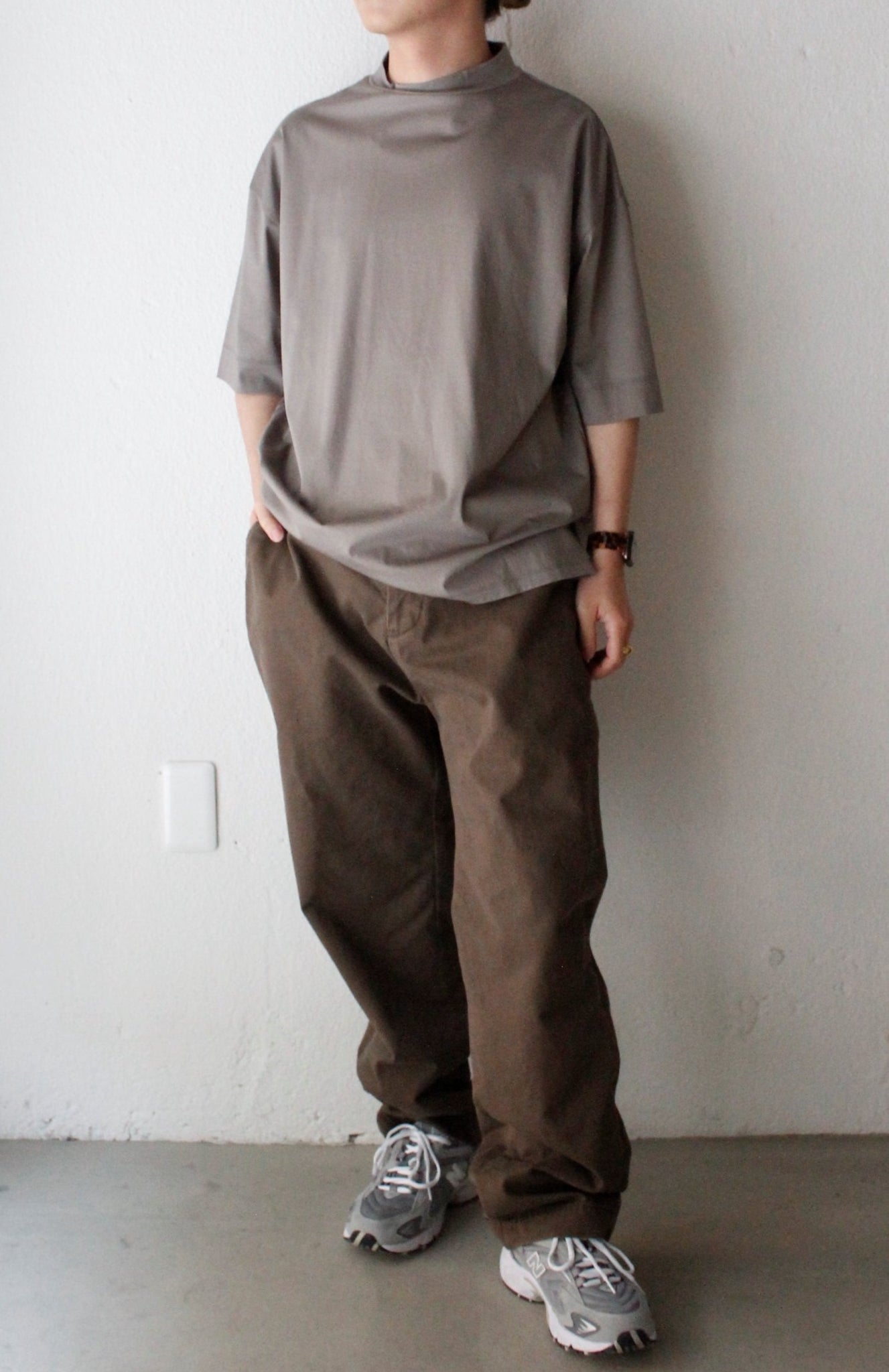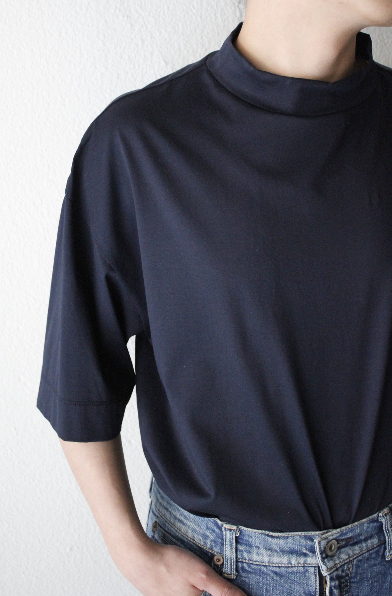 ゆったりとしたオーバーサイズフィットのモックネックTee。