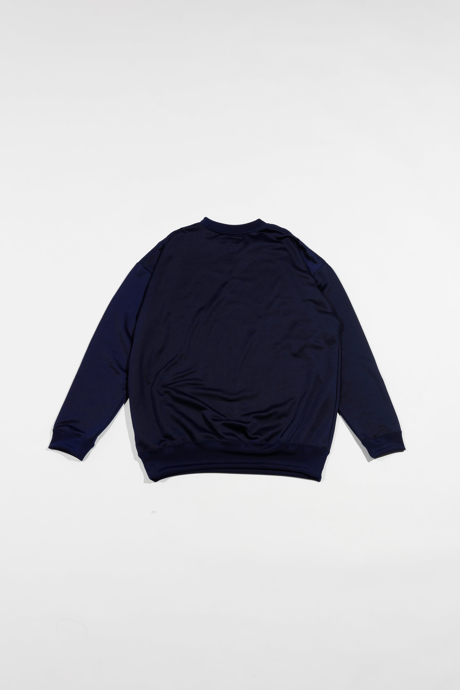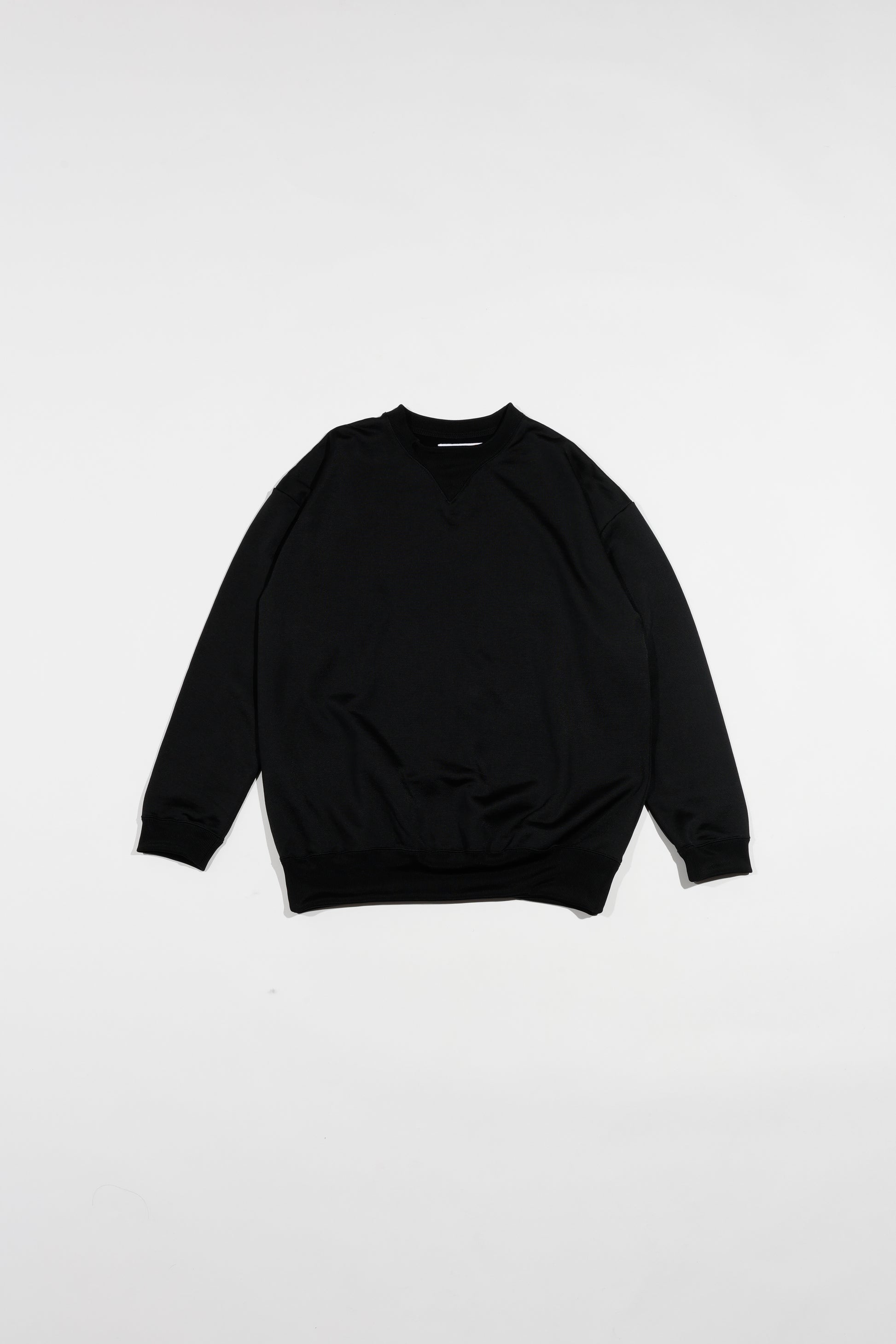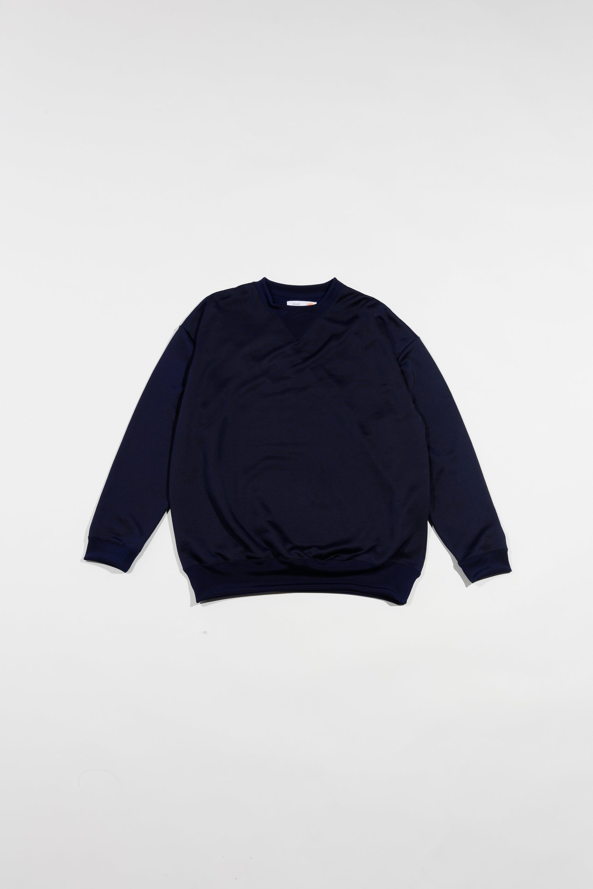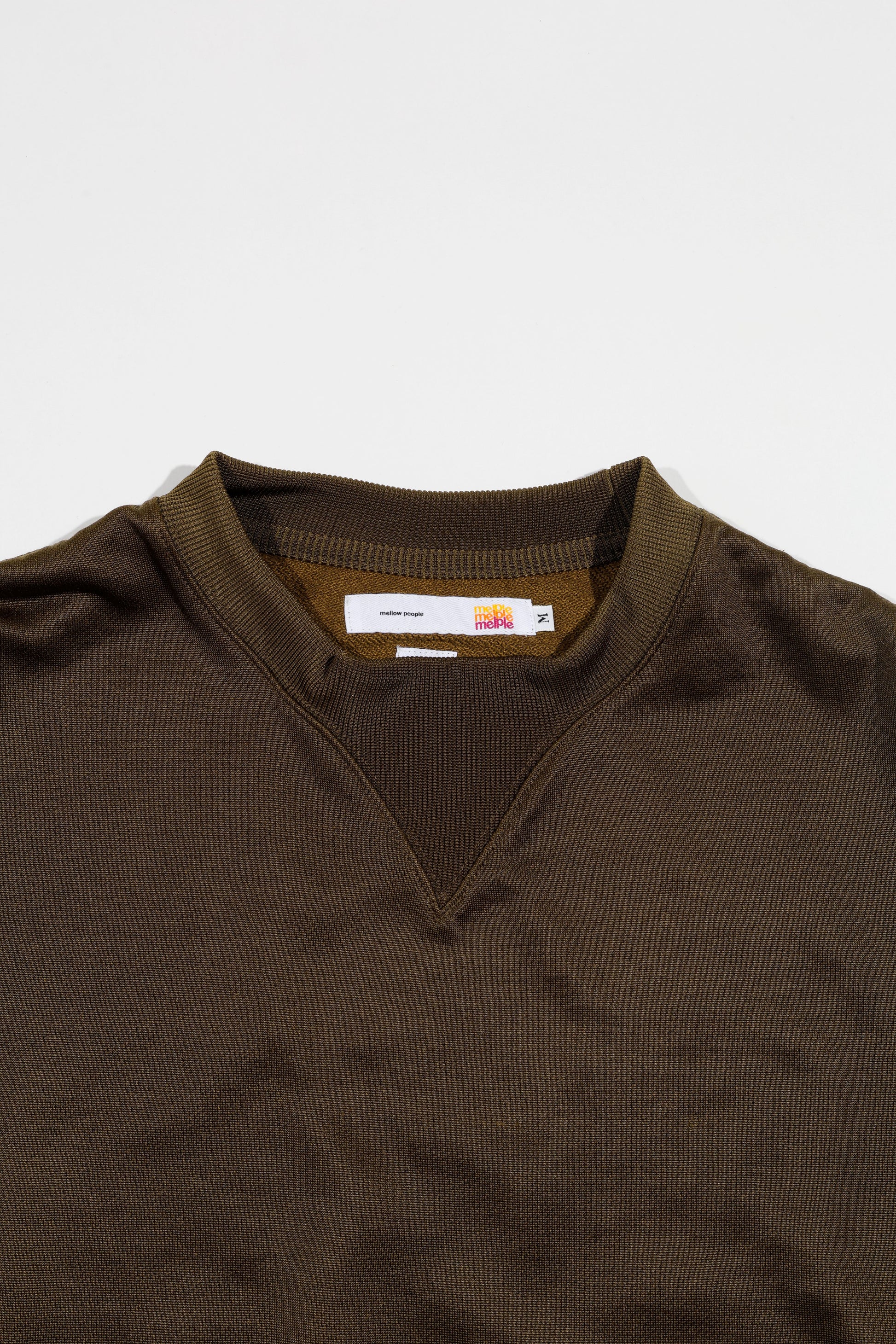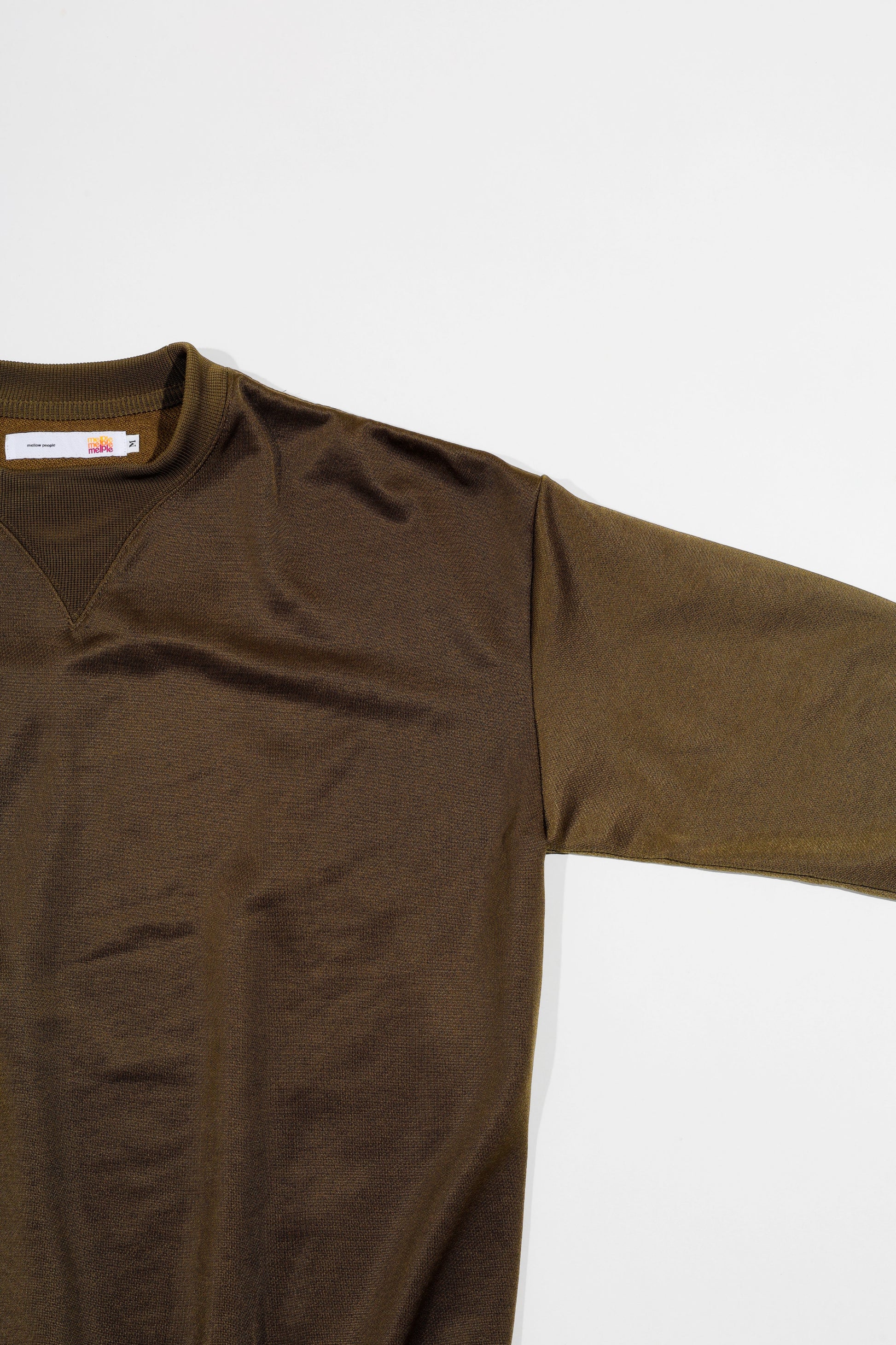 ヴィンテージスウェットでも人気の高い汗止めVガセットをデザインモチーフにしつつ独特な光沢感と共にmelpleらしいリラックスした雰囲気に仕上げている。